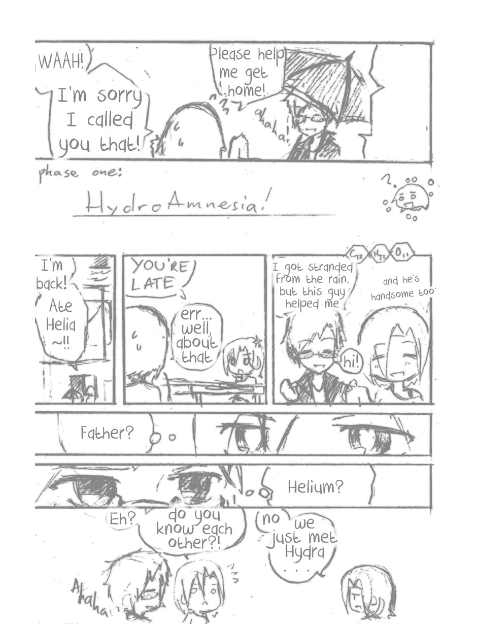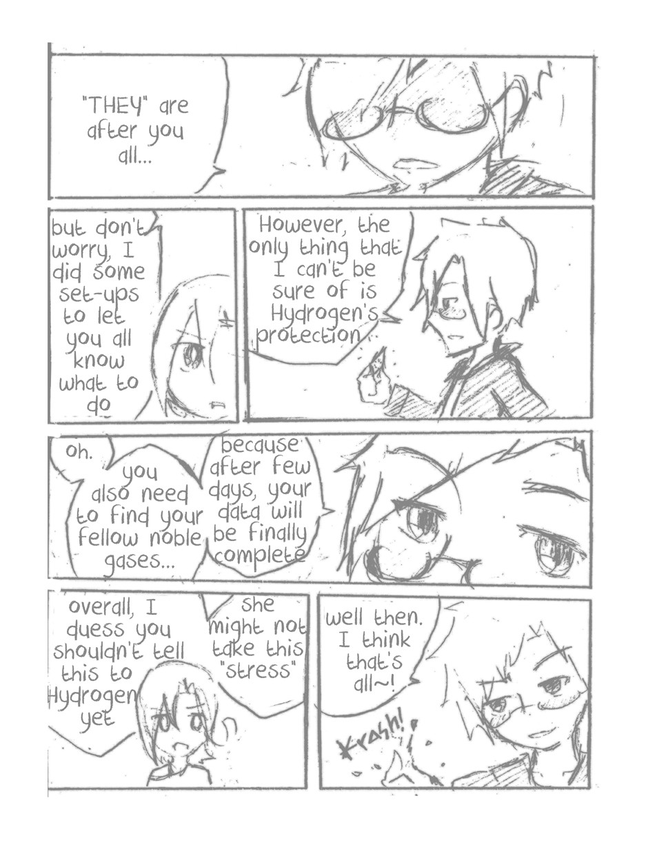 [Please read it in western style, or left to right.] Just simple webcom about the periodic elements as the characters. However, despite having some ordinary daily life going on with the characters, there's a conspiracy to be handled by Hydra, aka Hydrogen. Hydra then faces challenges that she doesn't even know(she's an airhead) and most of it is fighting with her sibling elements! [note: MESSY ART]