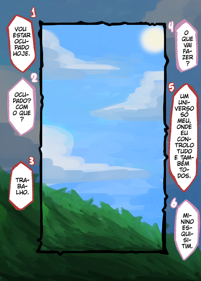 eu tenho aulas em tempo integral e não tenho mesa digitalizadora, então faço tudo no dedo, espero que entendam caso algum dia atrase um pouco :')