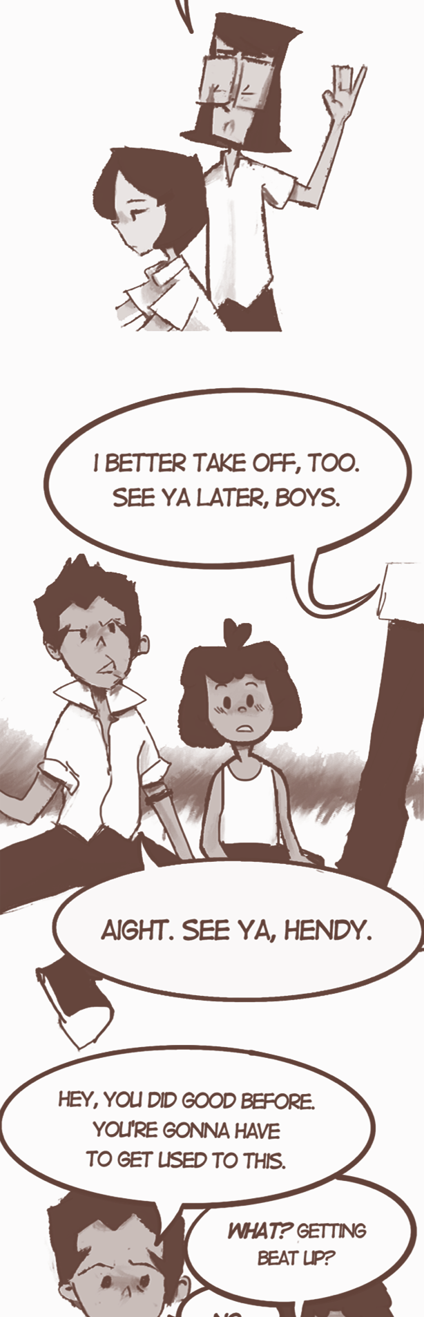 South-East Asian gangs. Middle-school drama. Meatballs. Join Amed and the Blue-Tie gang as they fight, steal, fall in love, and work their way up the ranks to become the most respected group amongst the schools of their hometown! Grab a seat and a bowl of meatballs and watch the sunset with the boys…
