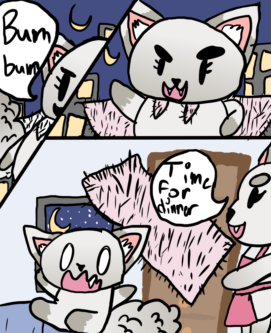 This is the story about a kitten named Mimi who's obsessed with superheros! She lives on comics and the superhero themed cereal, "Super Crunch Marshmallows". She has her own super-persona, Super Cat. Her mama is very supportive and is her biggest fan. She lives her life trying to be a superhero even though she can't.