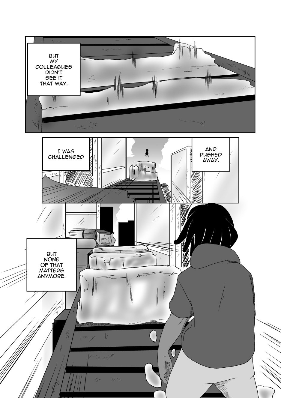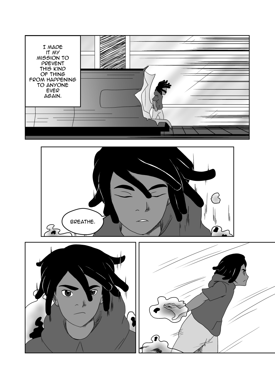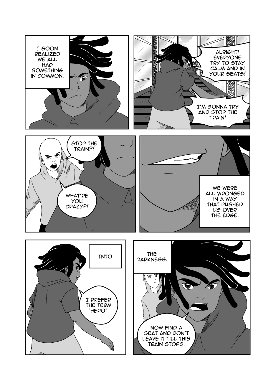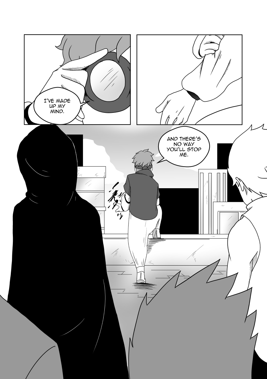 Honestly loved the concept you did here. You could tell that as you got more used to drawing the characters the drawings got better and better and didn't subside anywhere so that's a bonus! The story gives off a "to be continued" sort of vibe (-wink wink-) (-cough- -cough- I want to read more -cough- -cough- ) Anyway, in all seriousness you really did a great job both telling a story in itself and leaving it open-ended as well.