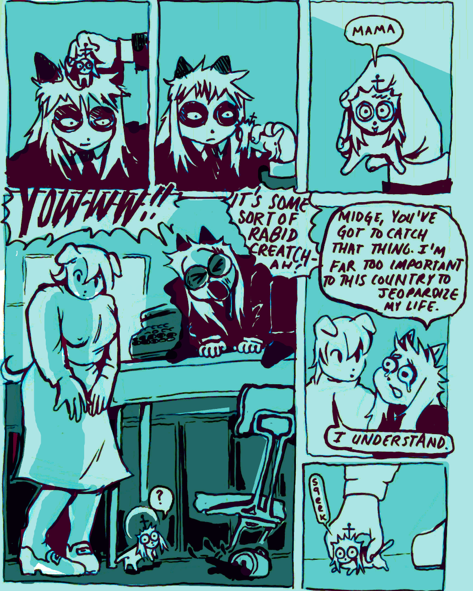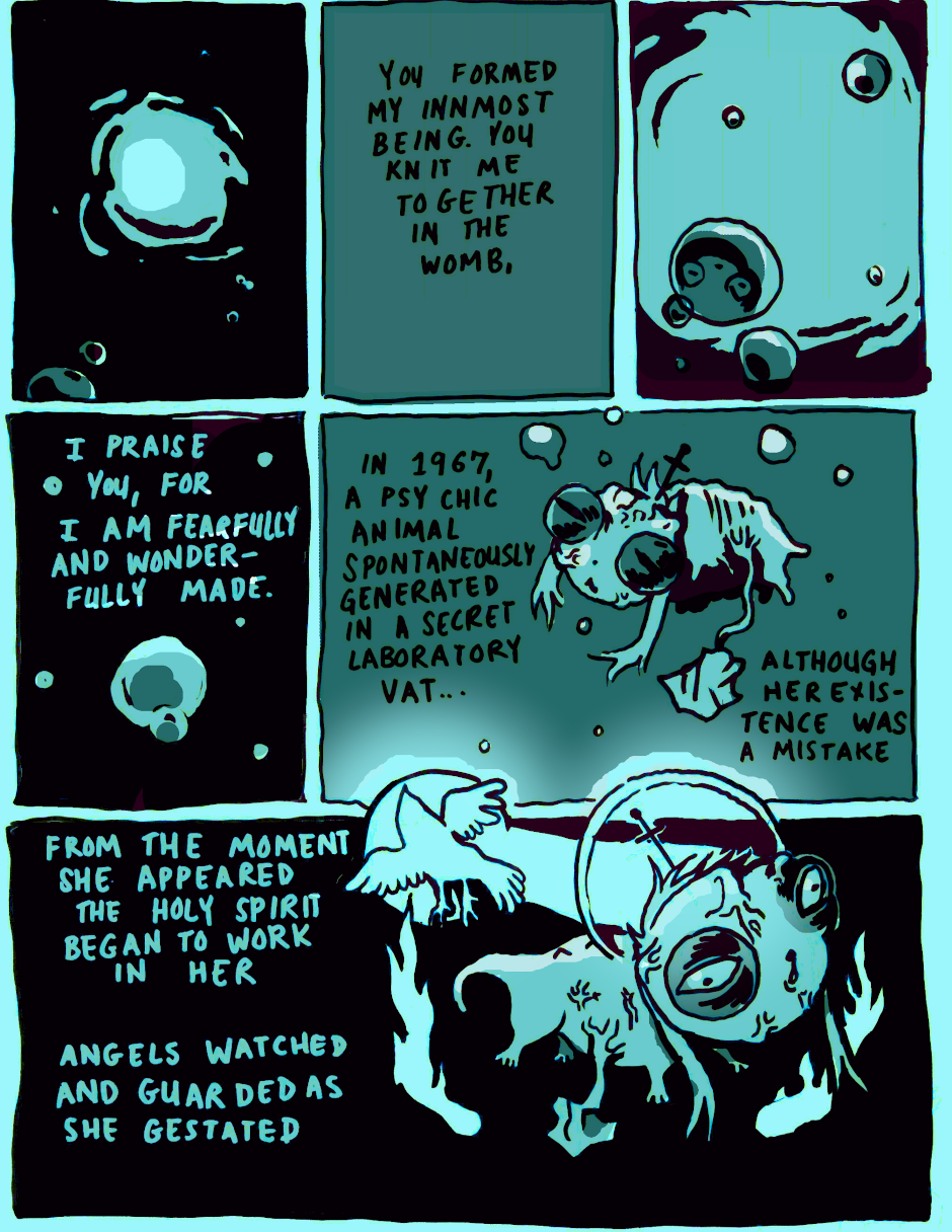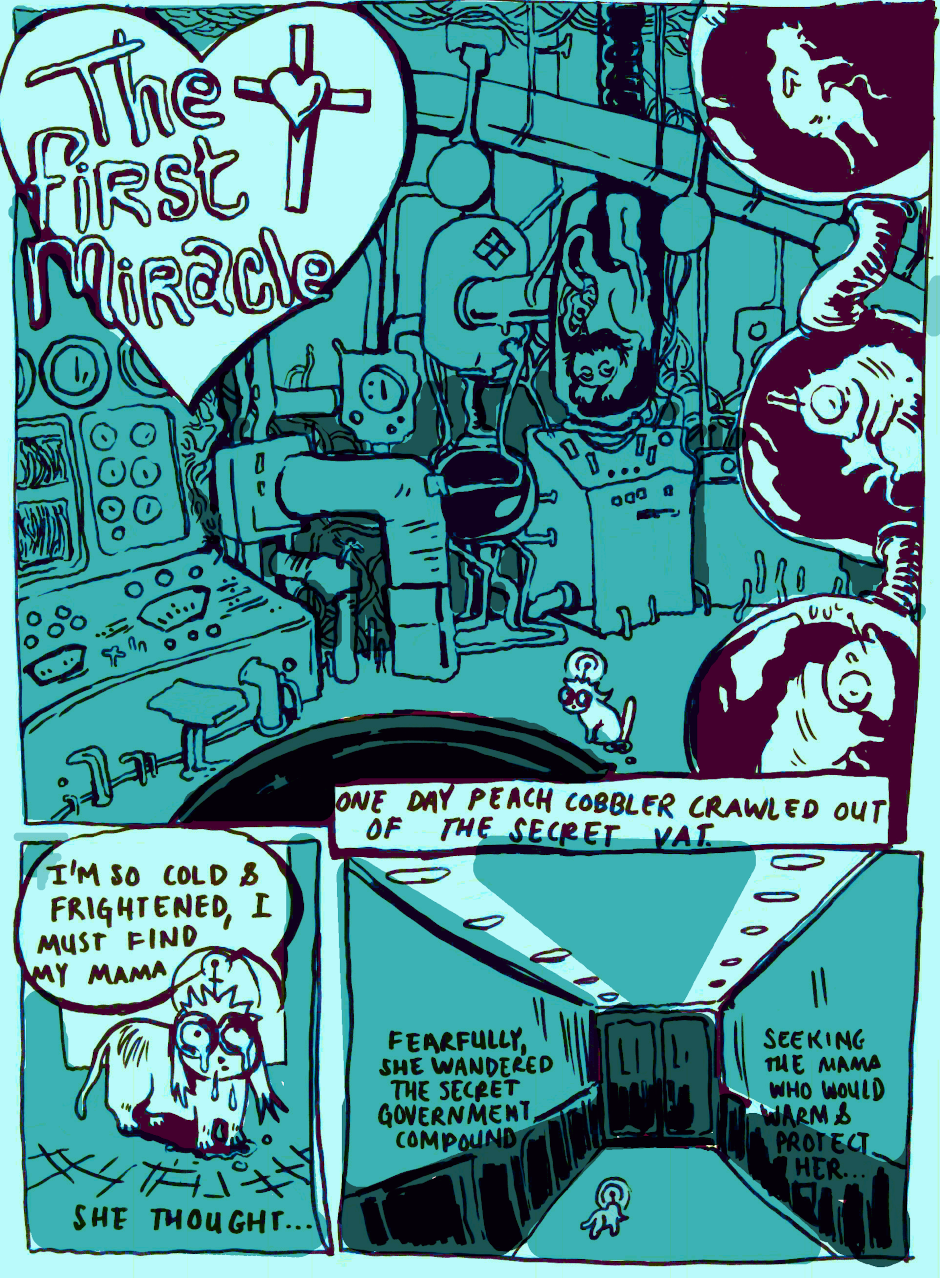 The Psychic Animal Peach Cobbler appears in a secret vat and the Holy Ghost sanctifies her being.