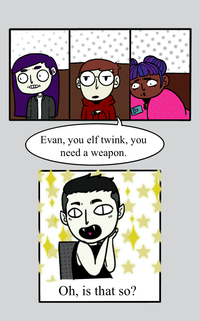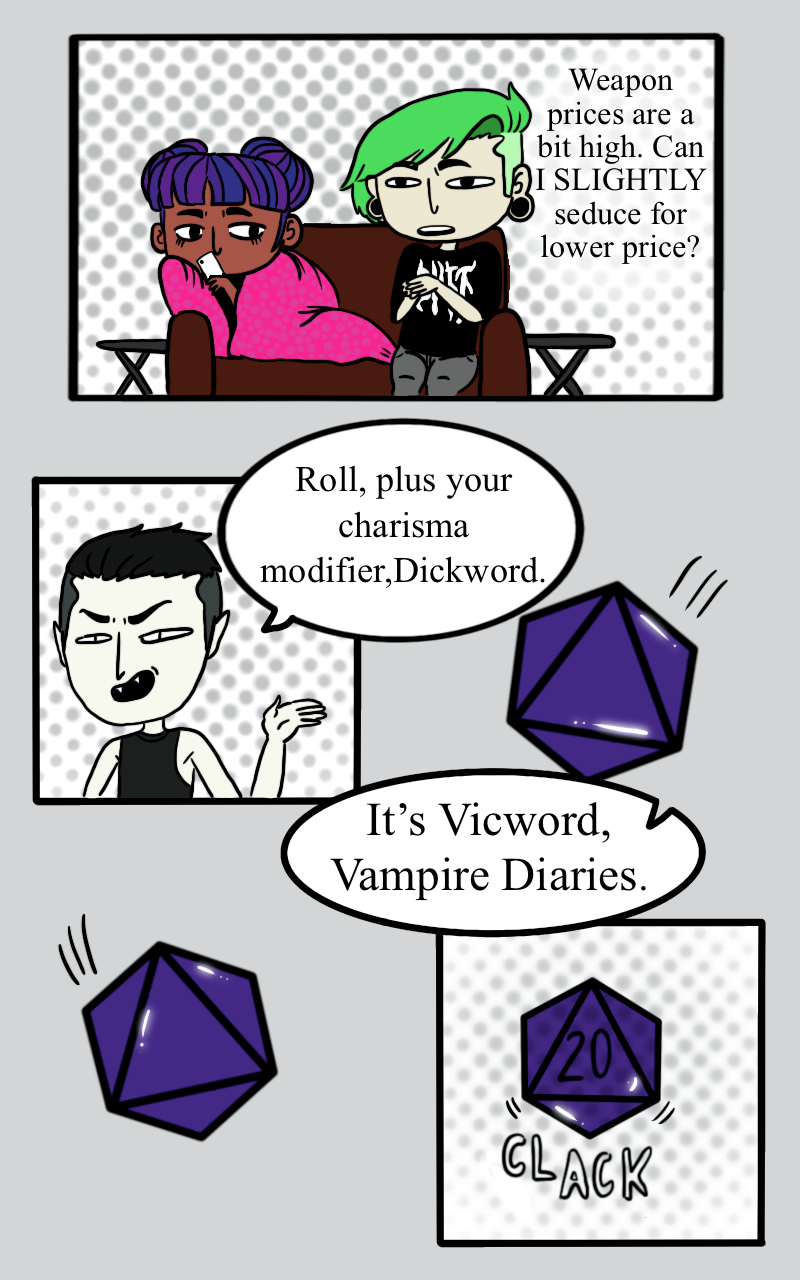 The young vampire Khita, his boyfriend Evan and their friends gather around to play their favorite TTRPG. Dusting off the plague of regular life things for raiding dungeons and… kissing dragons (cocky wizards, necromancers of days past and shapeshifter). All done with the looming threat of something bigger on their horizon. Immortality, the supernatural and normal mortal activities!
