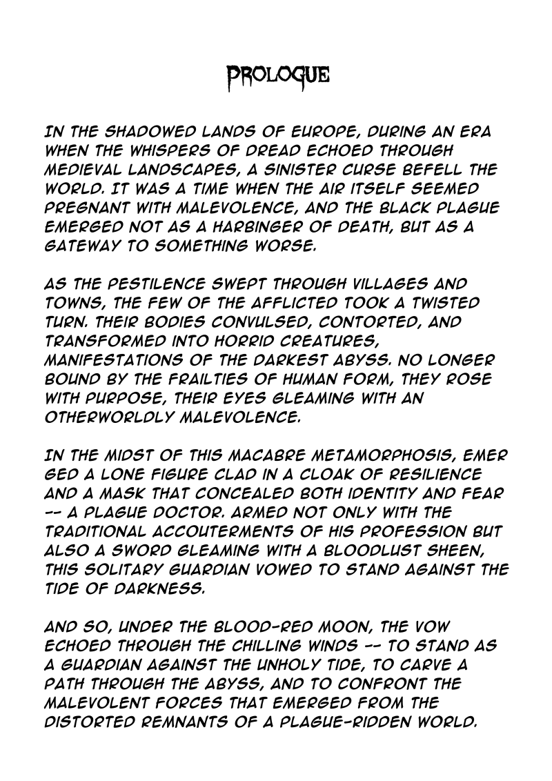DOCTOR PLAGUE, is a dark gothic fantasy inspired by Bloodborne and Castlevania, during the Black Plague, the infected transforms into horrid monsters. A plague doctor with tragic past, must fight these monsters while discovering a sinister plot that will leave the world in darkness.