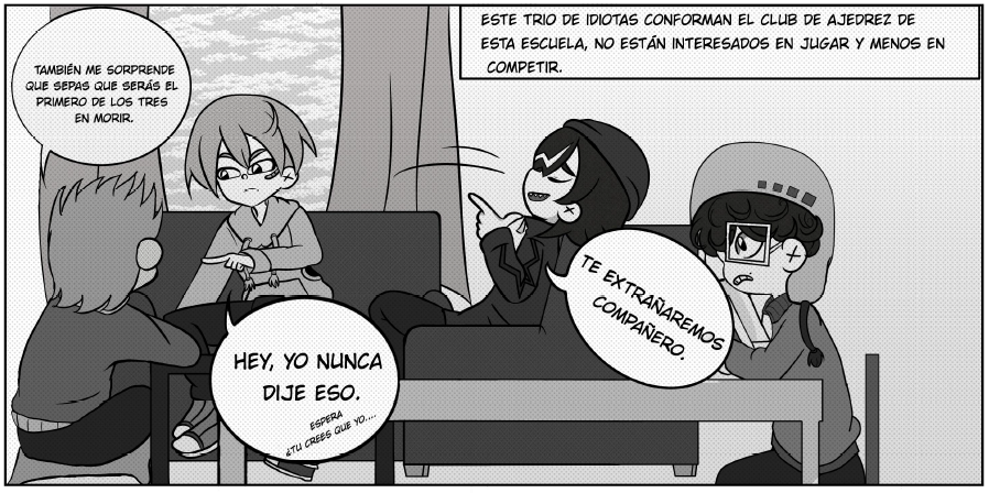 Hugo es el nuevo cuarto miembro del club de ajedrez de su nueva secundaria y también es el único miembro interesado en jugarlo. Los otros miembros apodados Goma, Rama y Cray usaban el salón del club solo como un lugar para relajarse antes de que llegara Hugo y parece ser que no tienen intención de cambiar esto aun después de su llegada. Una corta comedia donde veremos qué clase de reglas se inventan los 3 chicos para volver el ajedrez más fácil y divertido para ellos.