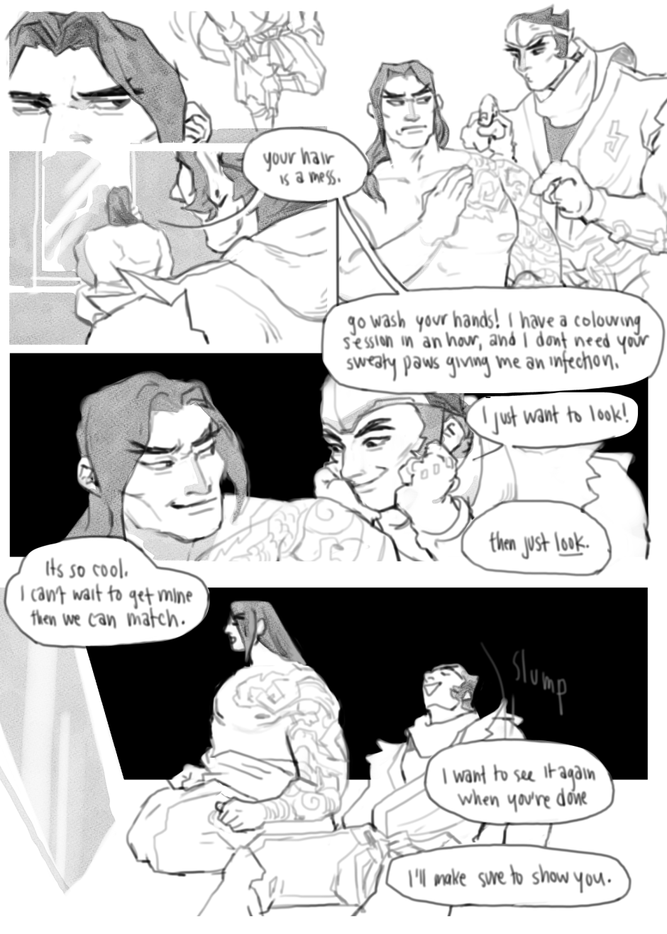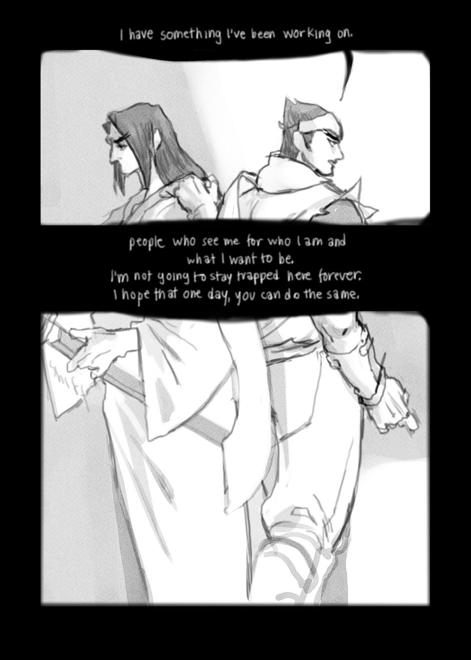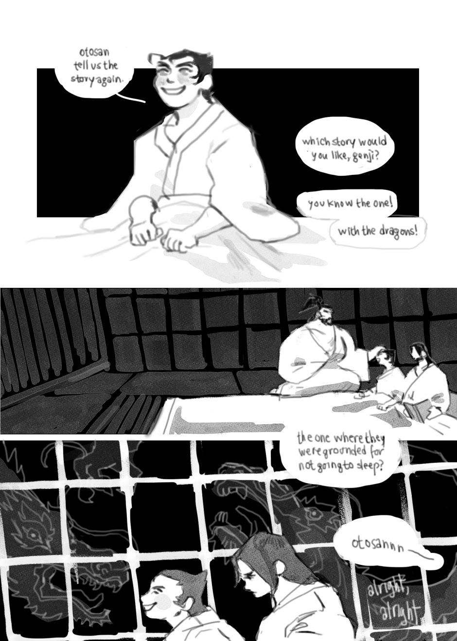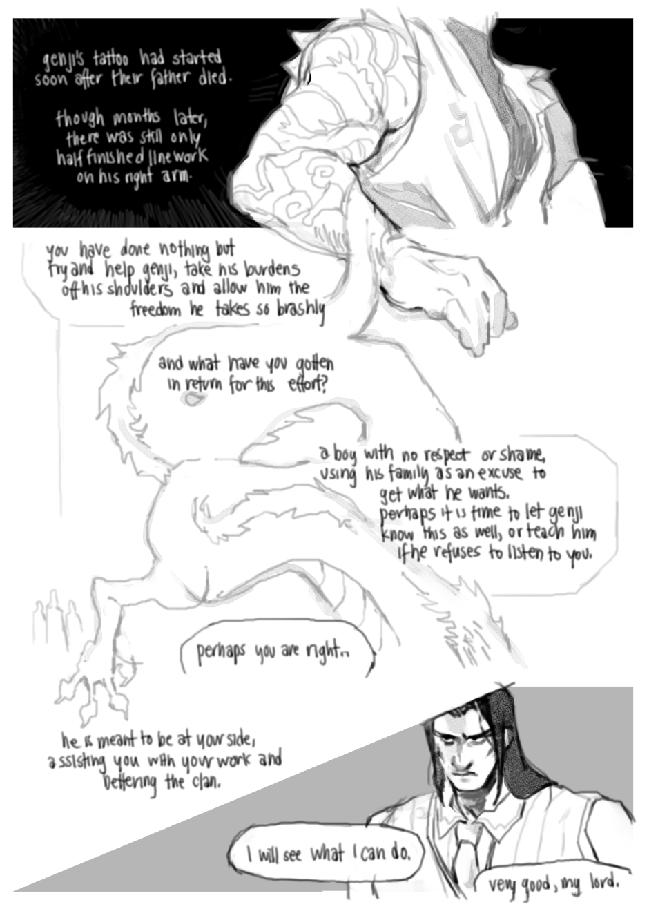 A tale of an inescapable fate, prewritten in tapestries and imbedded in skin. Fan content created for Genji Shimada and Hanzo Shimada, who respectively belong to blizzard ent.