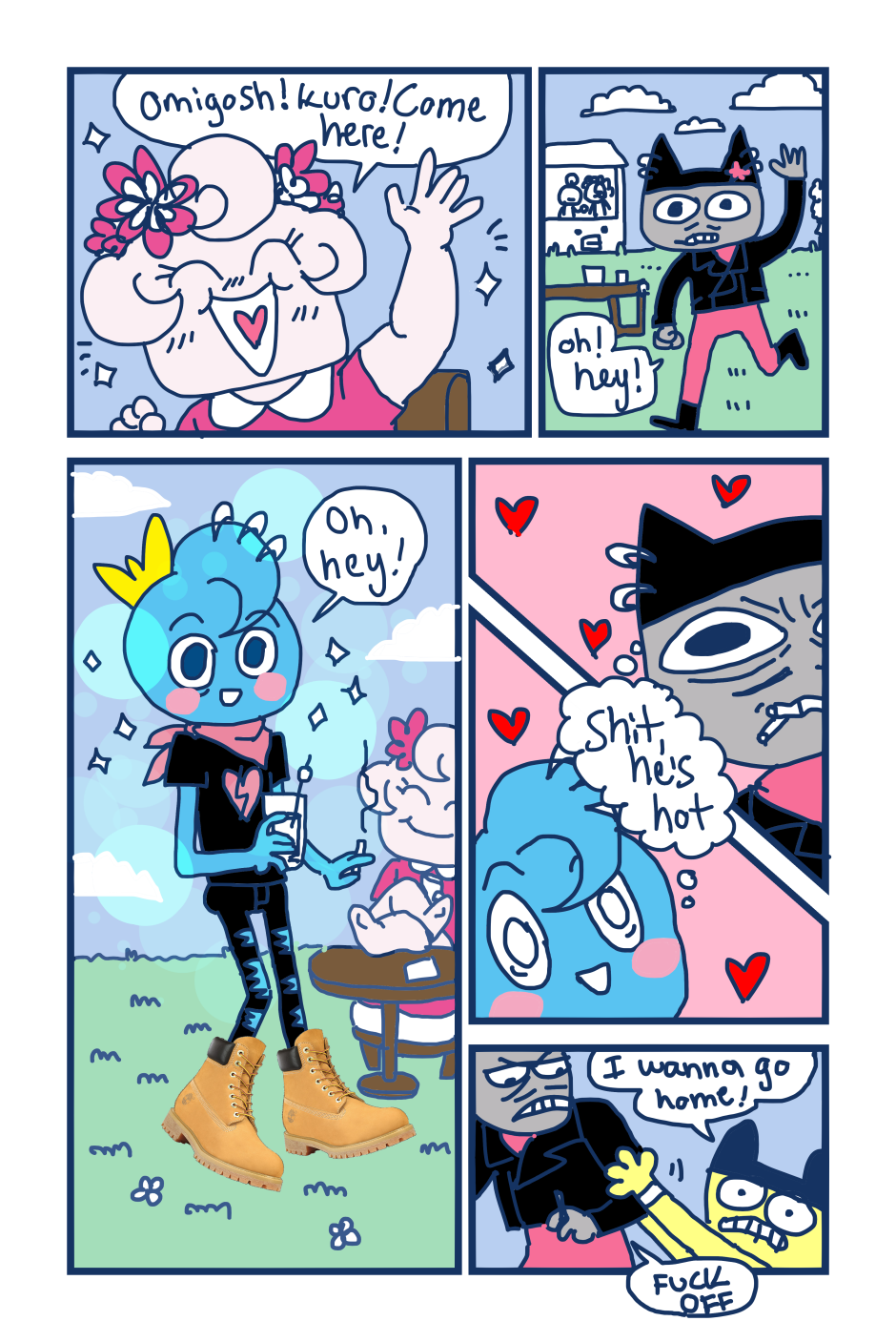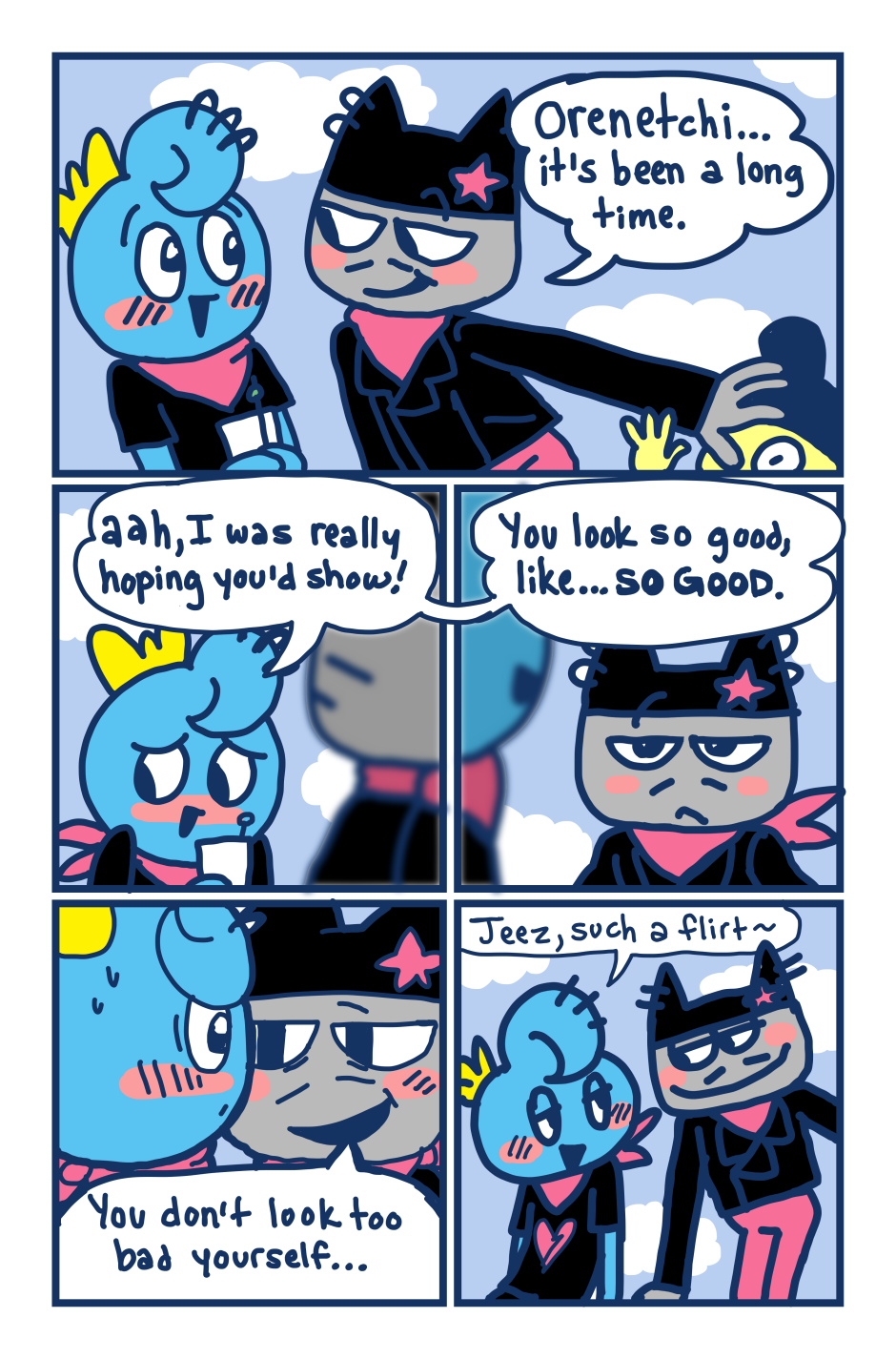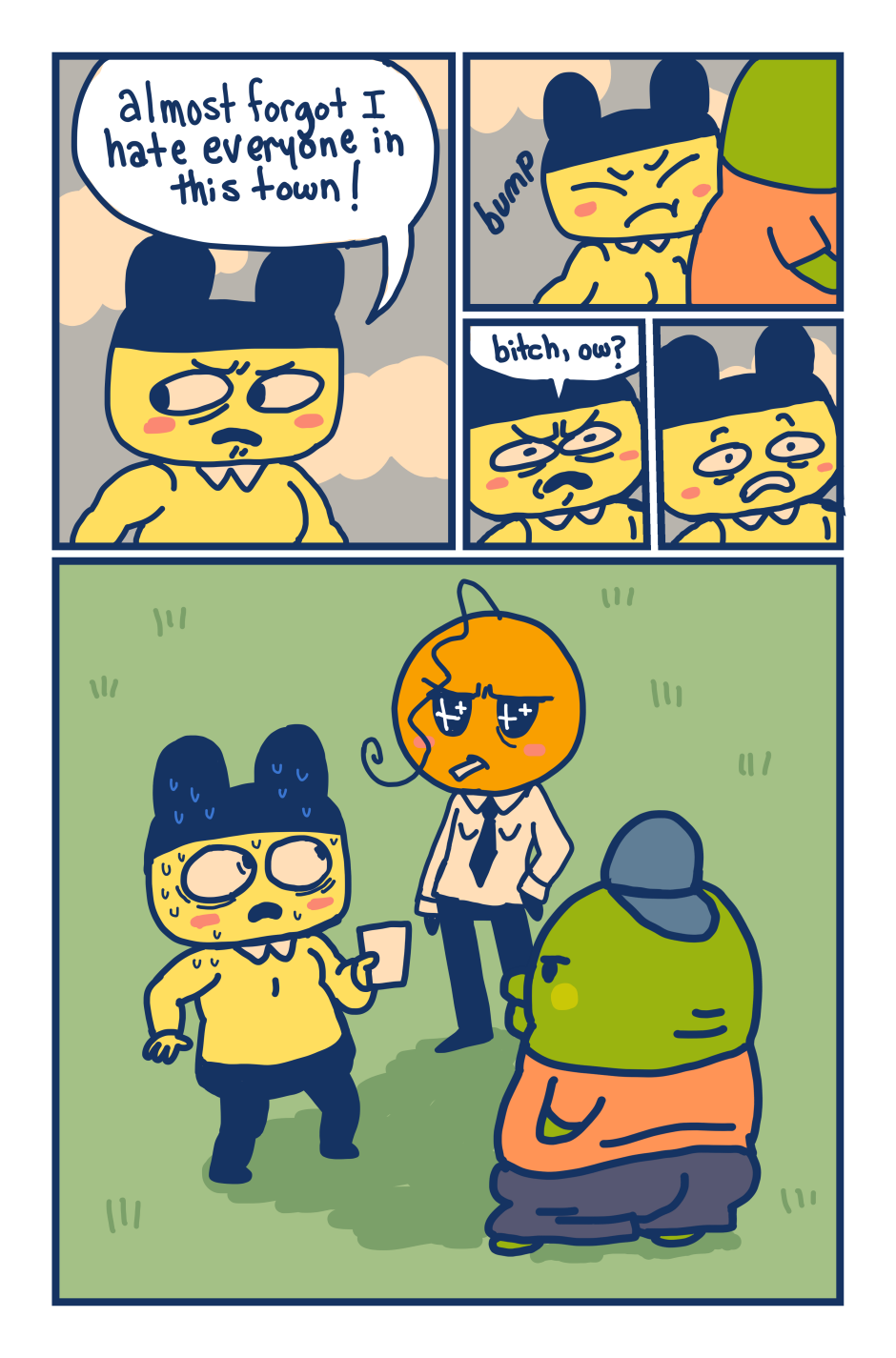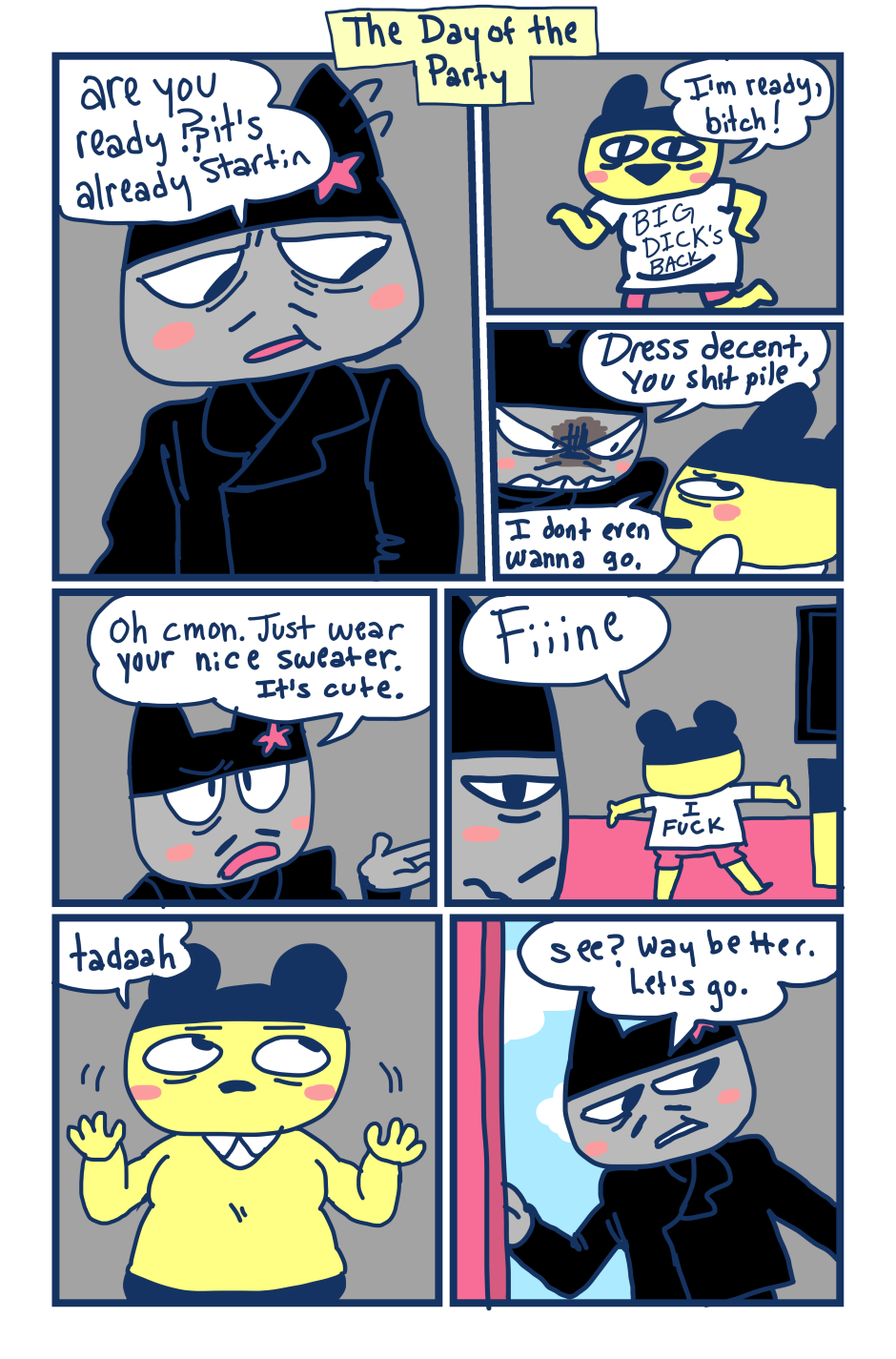 A fancomic/parody for the Tamagotchi series by Bandai. This story follows Mametchi and Kuromametchi 10 years after their prime time. Mametchi finds himself at a dead end in life. He sleeps on Kuromametchi's floor and has no job or money. Kuromametchi is tired of living with Mametchi, who is openly homophobic, but feels bad for his old friend. This story follows Mametchi as he tries to become a decent person and mend his broken relationships.