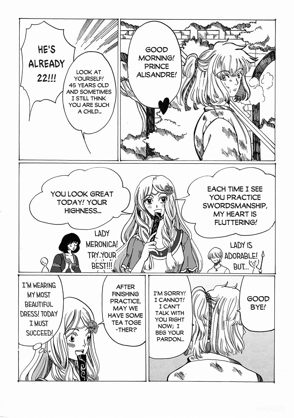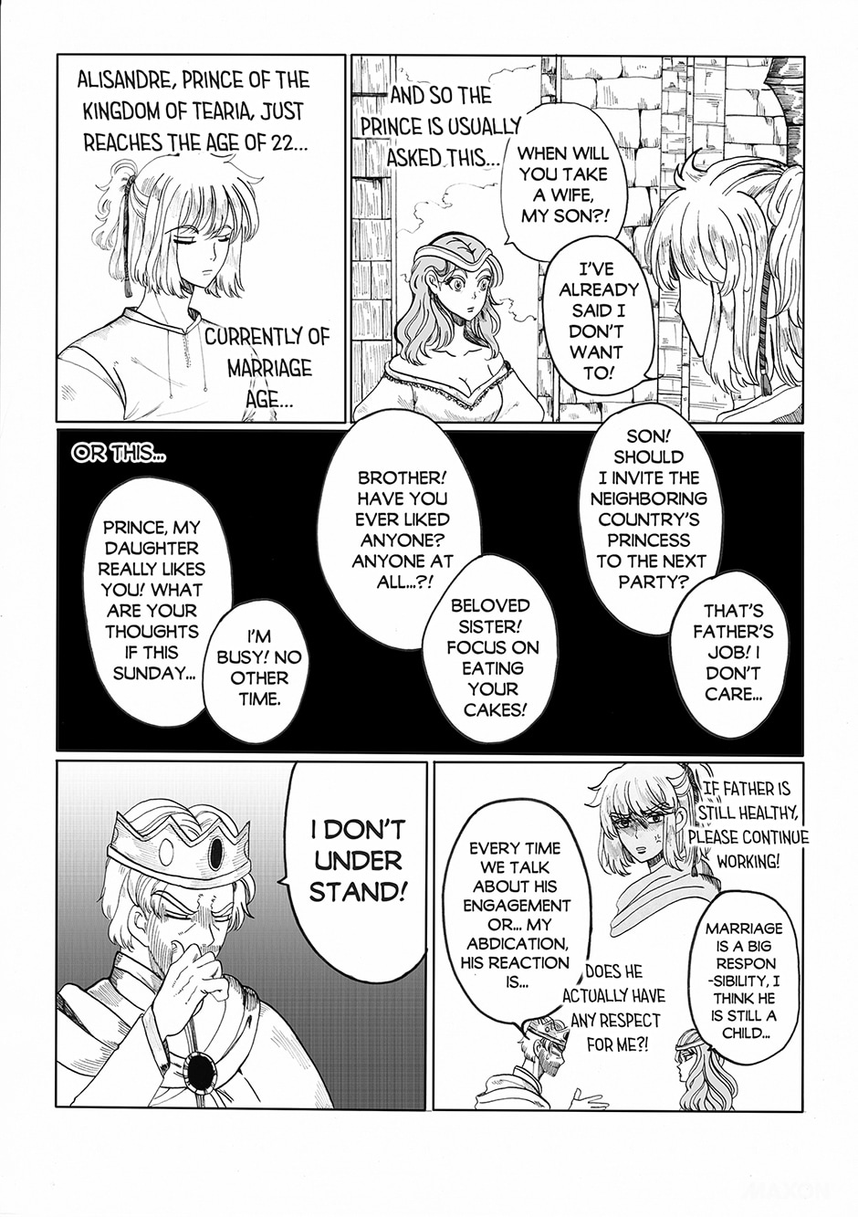 Alisandre of TeaRia Kingdom is a young prince who simply refused to be forced into marriage. After a duel against the talented peasant Willet, Alisandre enlists the man as his personal bodyguard.
