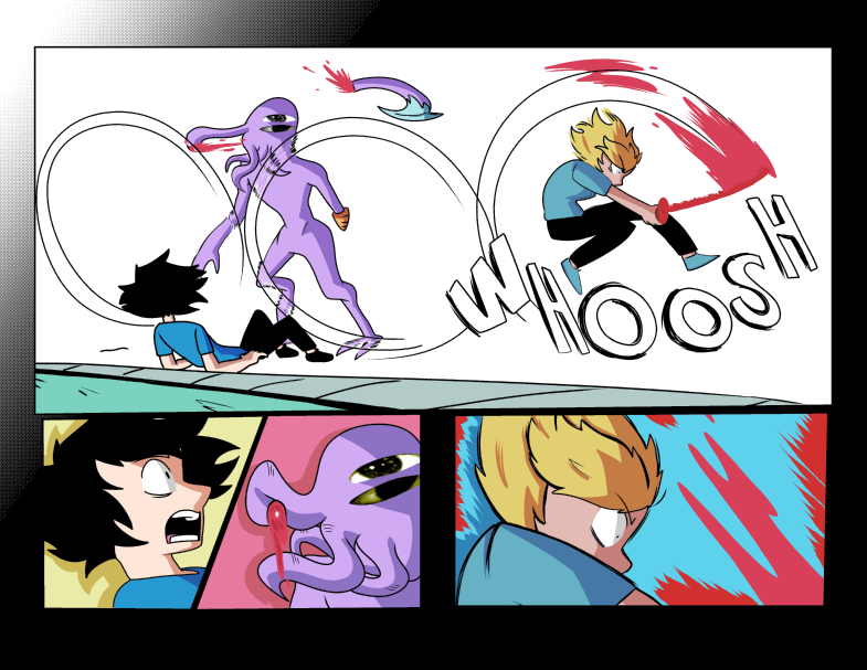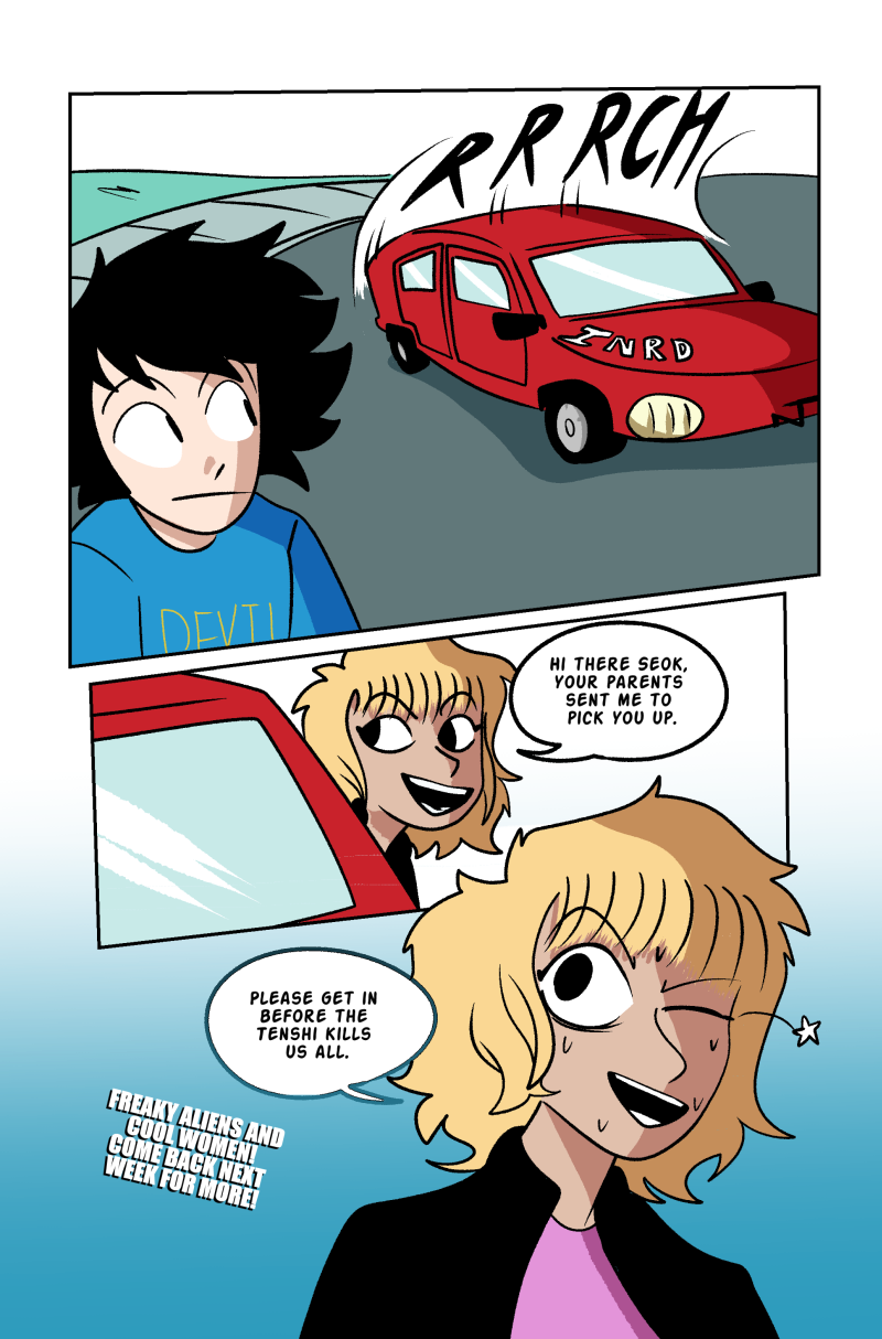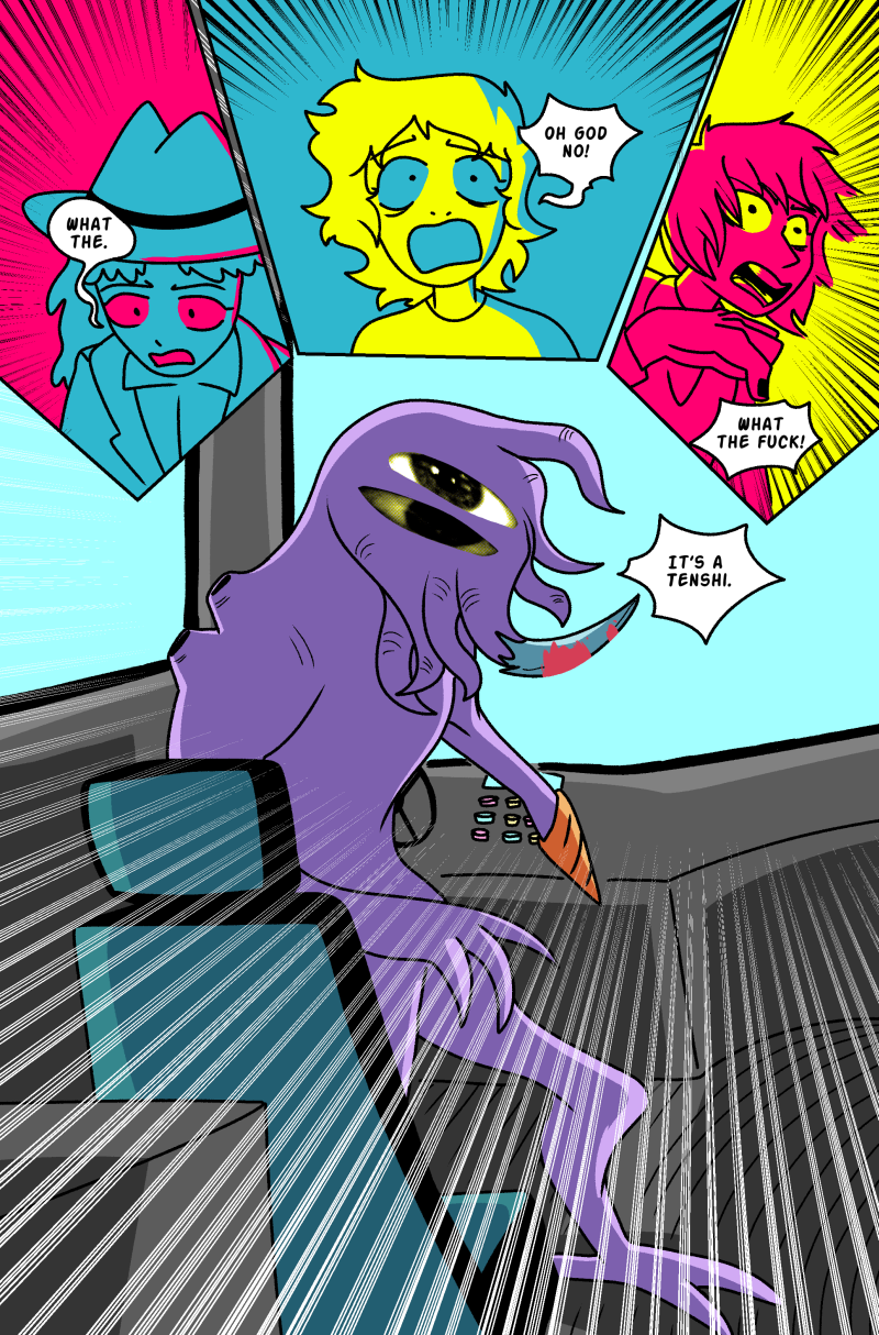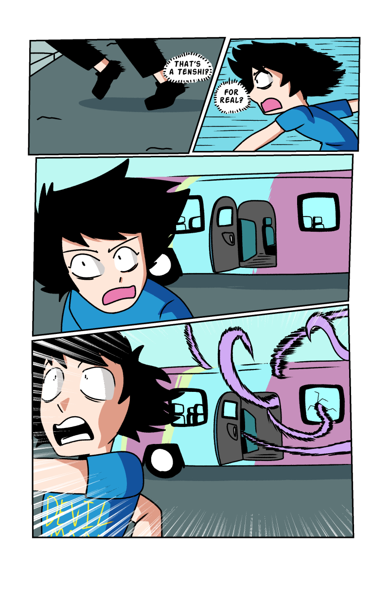 After devouring part of his deceased grandmother's brain, 14-year-old Seok Sagisu gains special abilities and is forced to fight violent abstract alien entities known as Tenshi who threaten all life on earth. Throughout his journey, Seok must learn to balance his relationships, constant existential/identity crisis, and shady government figures who wish him and his friends' harm. Content warning for cartoon violence and mild sexual themes, Basically TV-14. UPDATING EVERY OTHER TUESDAY