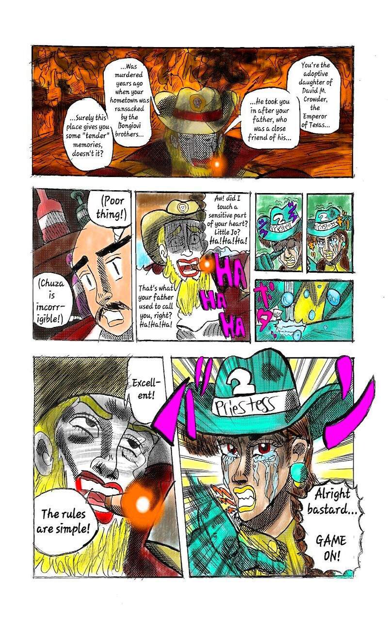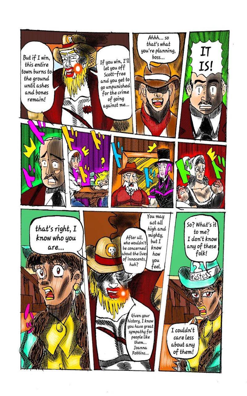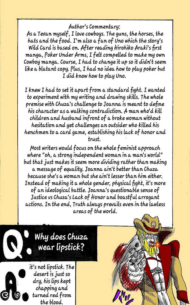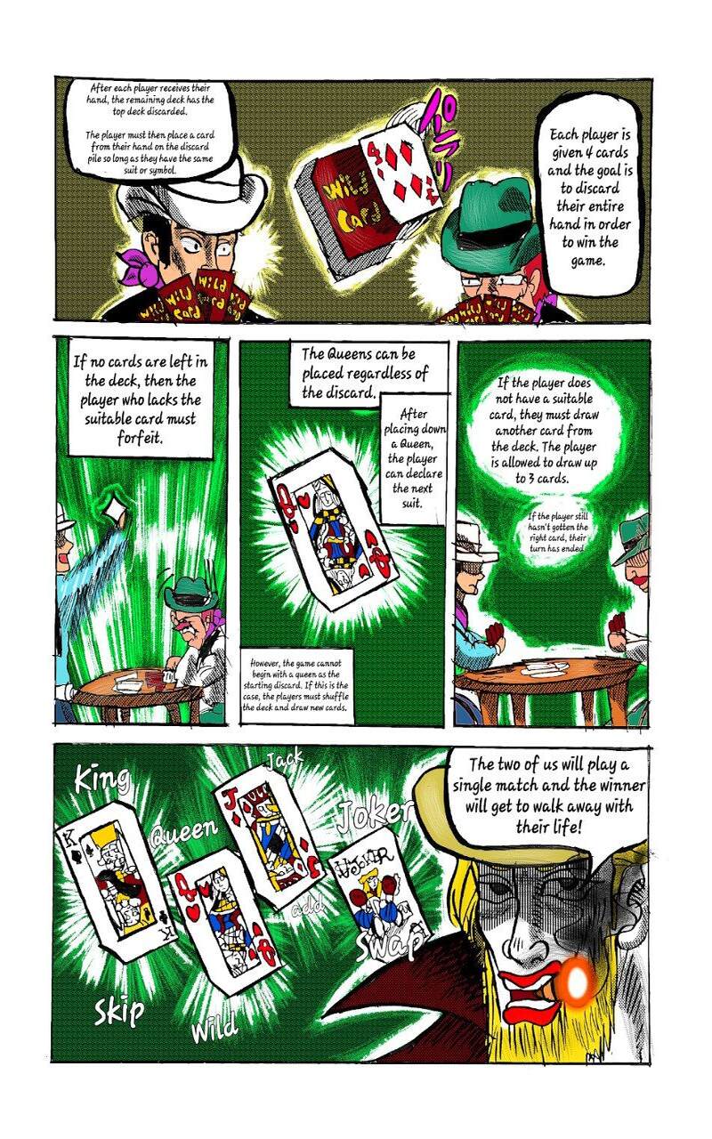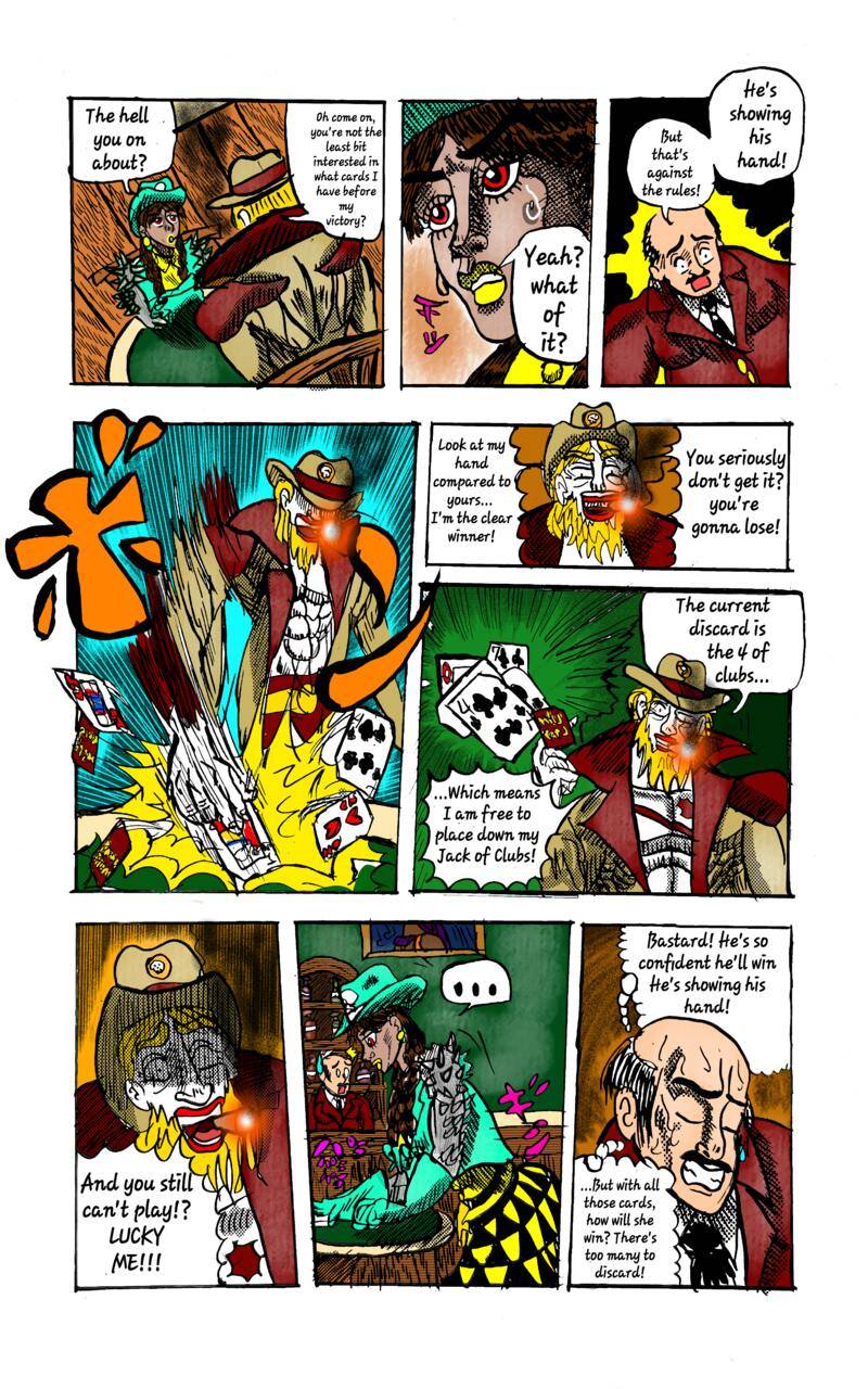 While riding out west to meet a friend, Joanna Robbins finds herself in a smalltown village under the threat of a madman named Gerizim Chuza. After killing one of his men in self-defense, Joanna must beat Chuza in a game of Wild Card for the fate of not just herself but also the entire village,