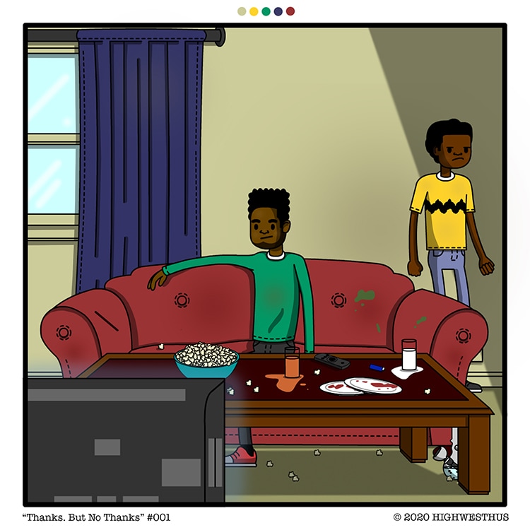 Meet Skip and Gerry, two roommates in their late 20's, just trying to figure out life. Whether it's dealing with the ghost at work, home training your weird pet goat, or dealing with unknown spiritual entities, these two somehow manage to make it look easy. "Thanks. But No Thanks." Created by HighWesthus // highwesthus.com