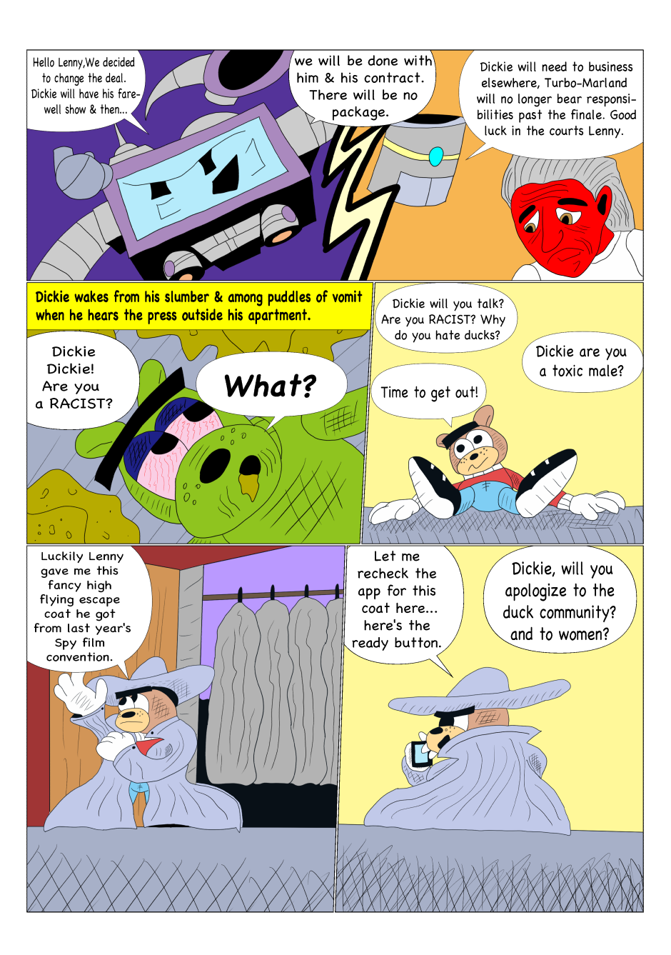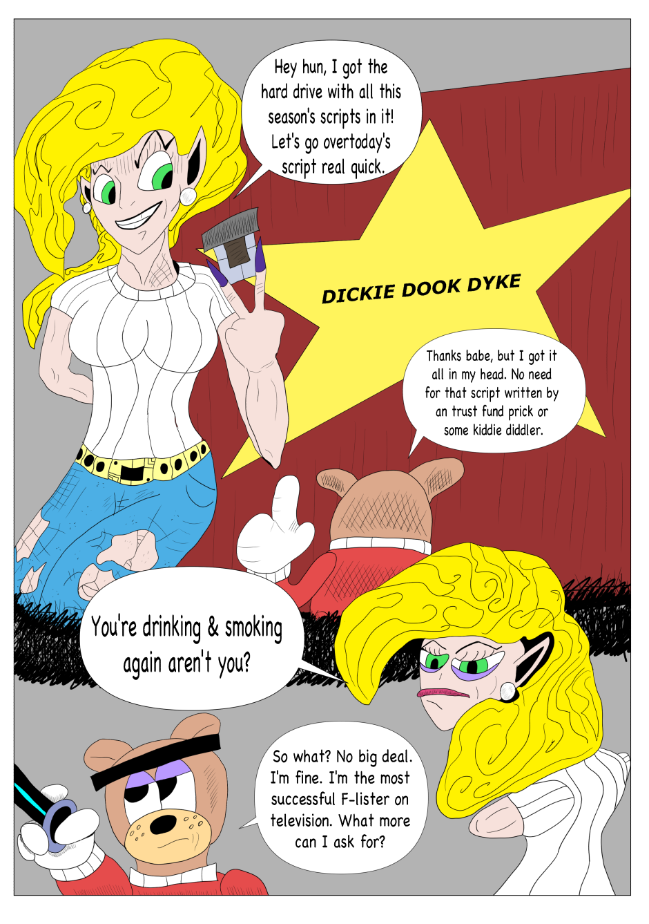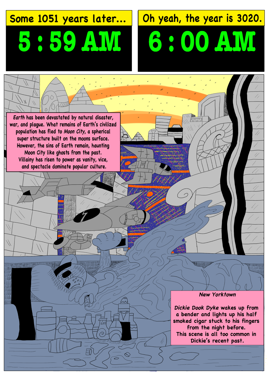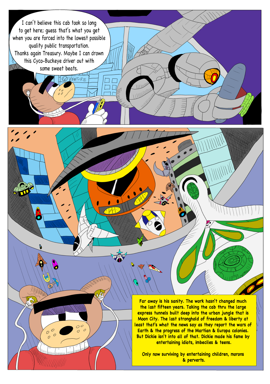 Dickie Dook Dyke was once the top comedian and comedic movie star in Moon City. However, thru his faults and vices, he has fallen to hosting a children's show for one of the most ruthless corporations in show business. Yet one incident will lead to his downfall and the start of his journey to redemption.