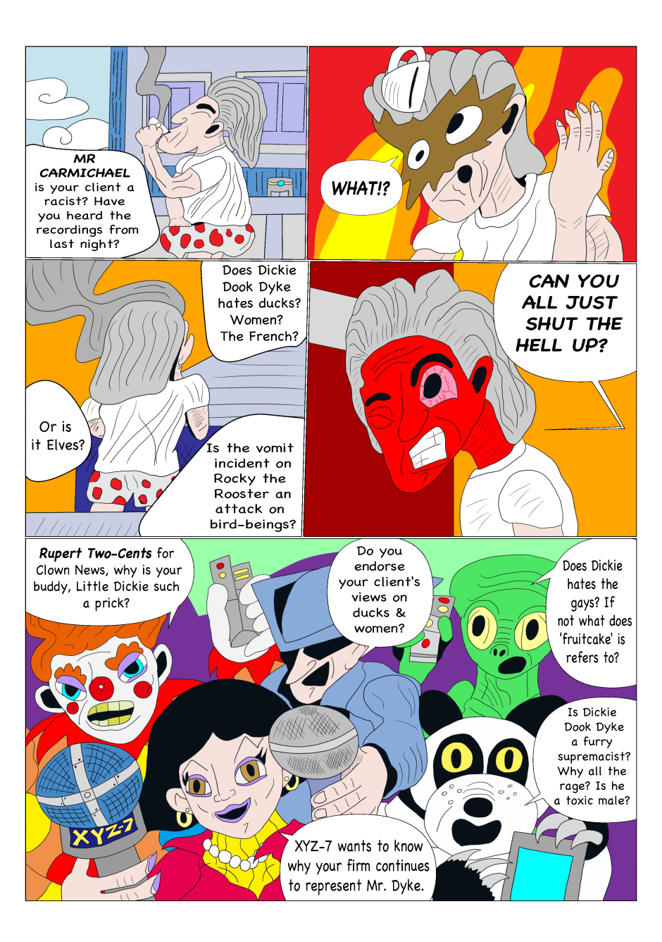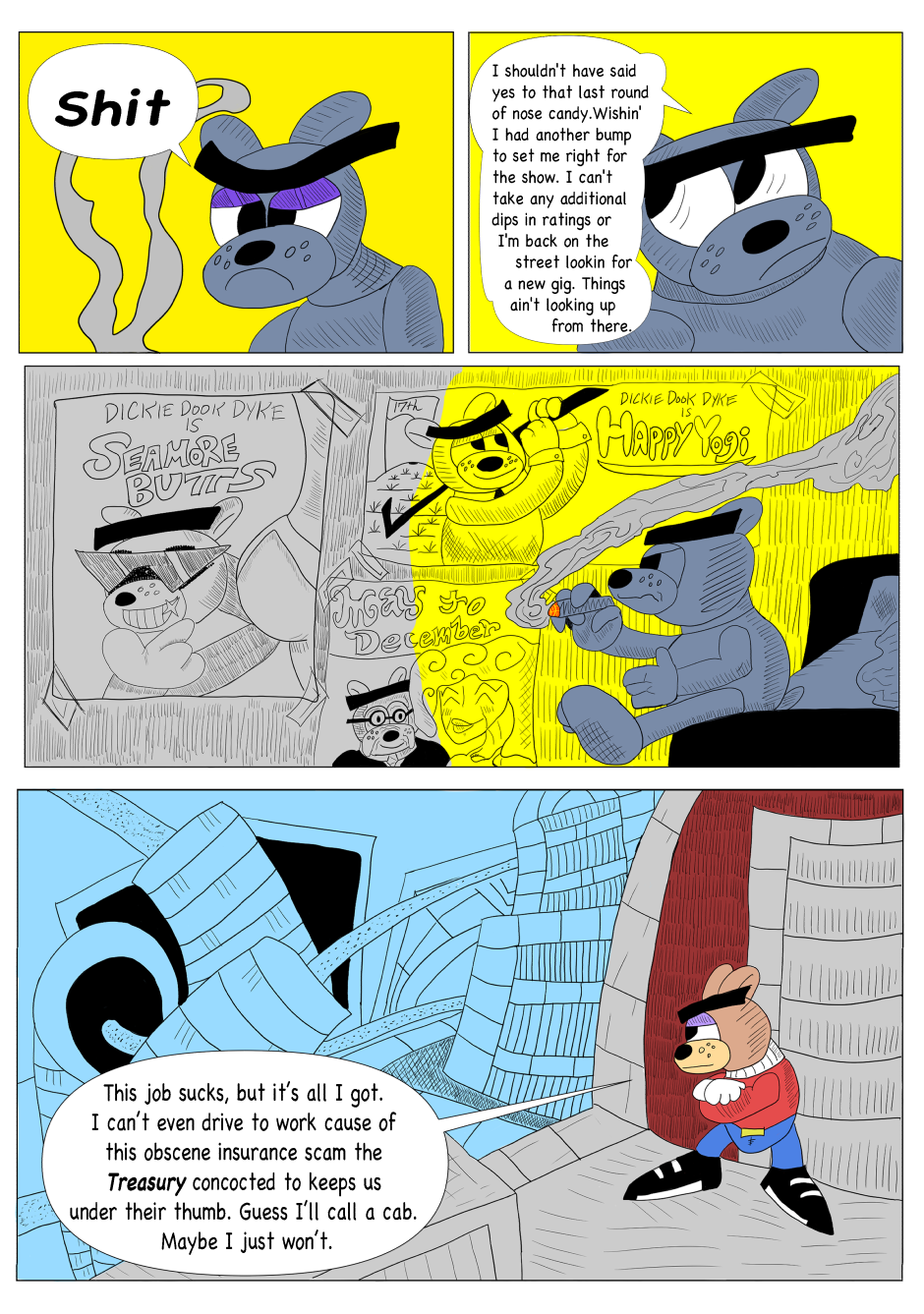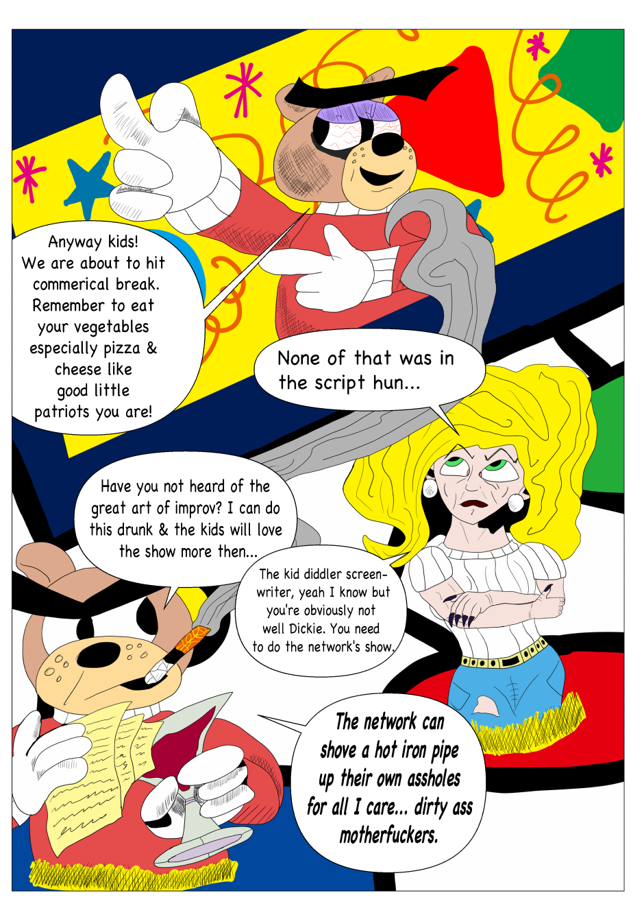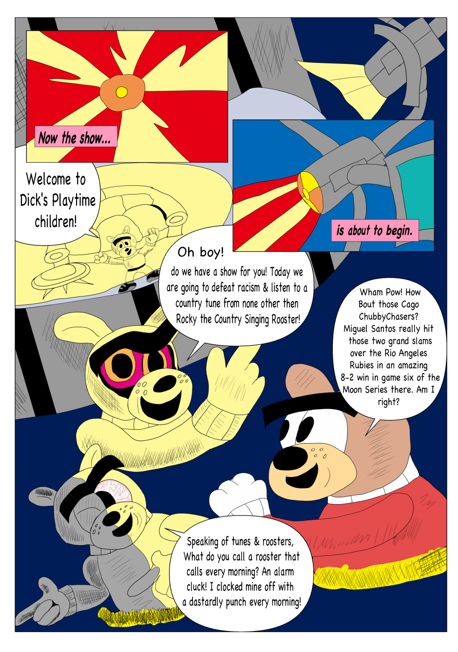 Dickie Dook Dyke was once the top comedian and comedic movie star in Moon City. However, thru his faults and vices, he has fallen to hosting a children's show for one of the most ruthless corporations in show business. Yet one incident will lead to his downfall and the start of his journey to redemption.