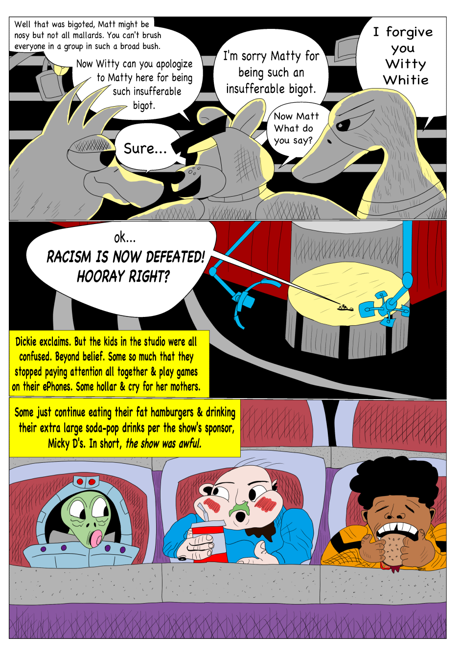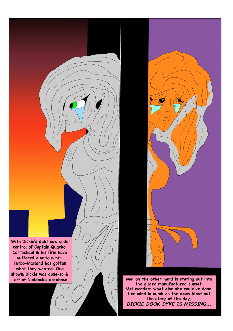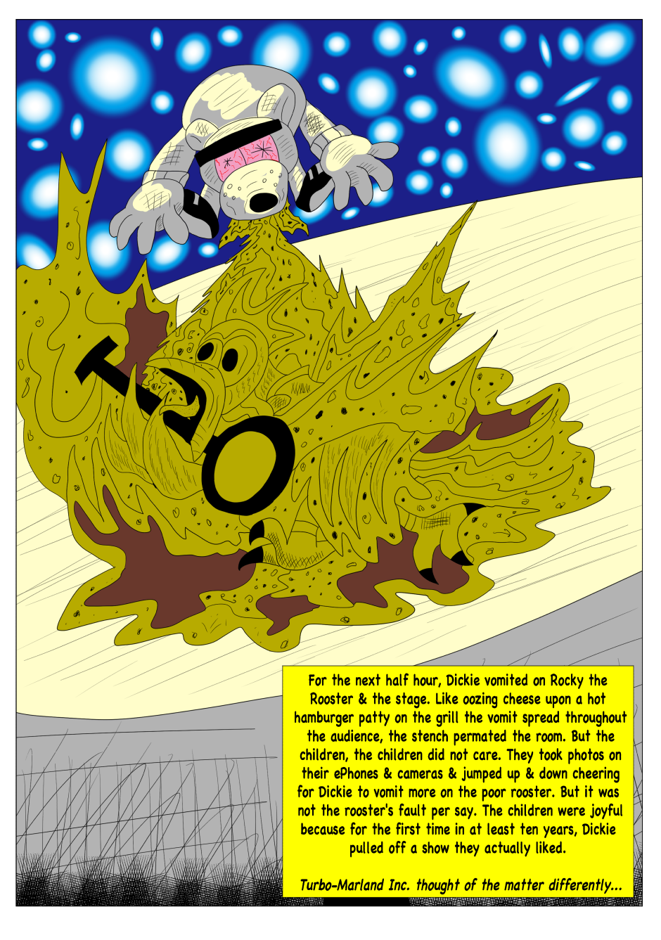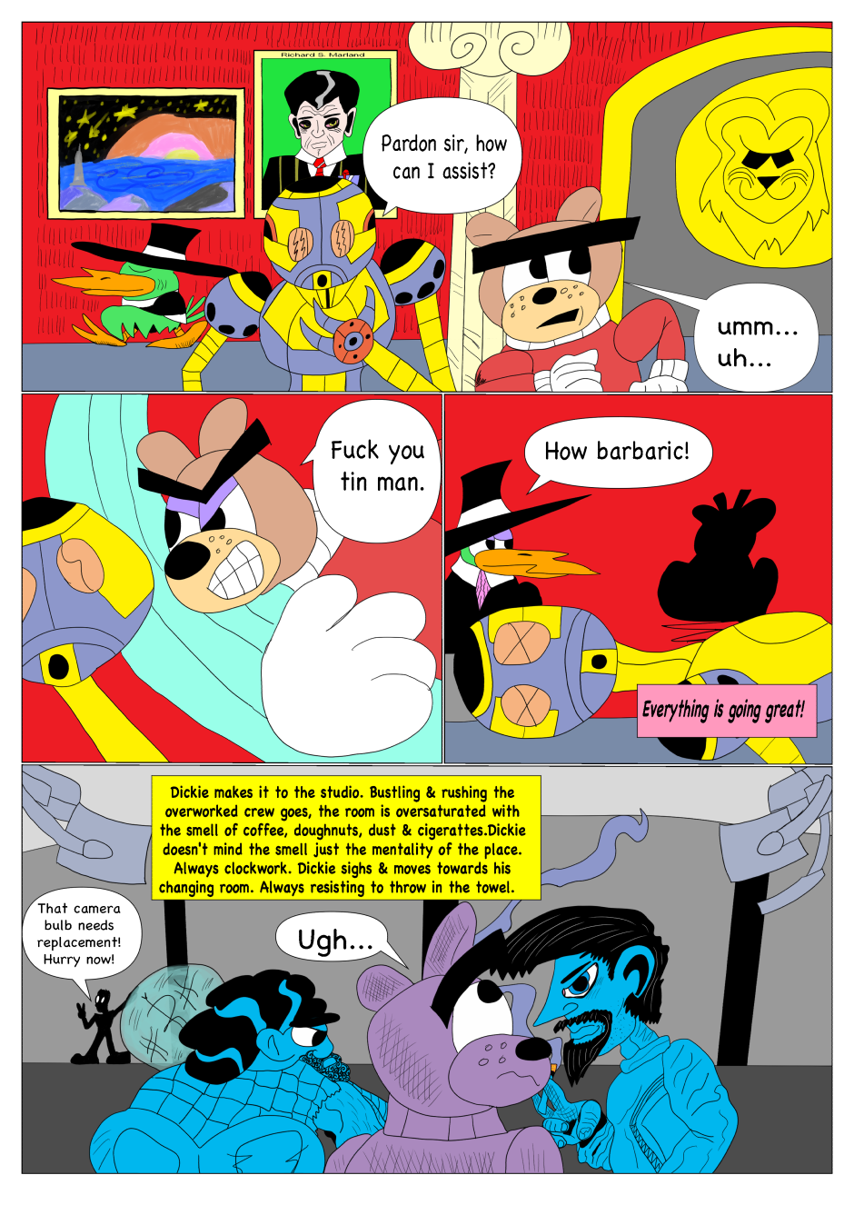 Dickie Dook Dyke was once the top comedian and comedic movie star in Moon City. However, thru his faults and vices, he has fallen to hosting a children's show for one of the most ruthless corporations in show business. Yet one incident will lead to his downfall and the start of his journey to redemption.