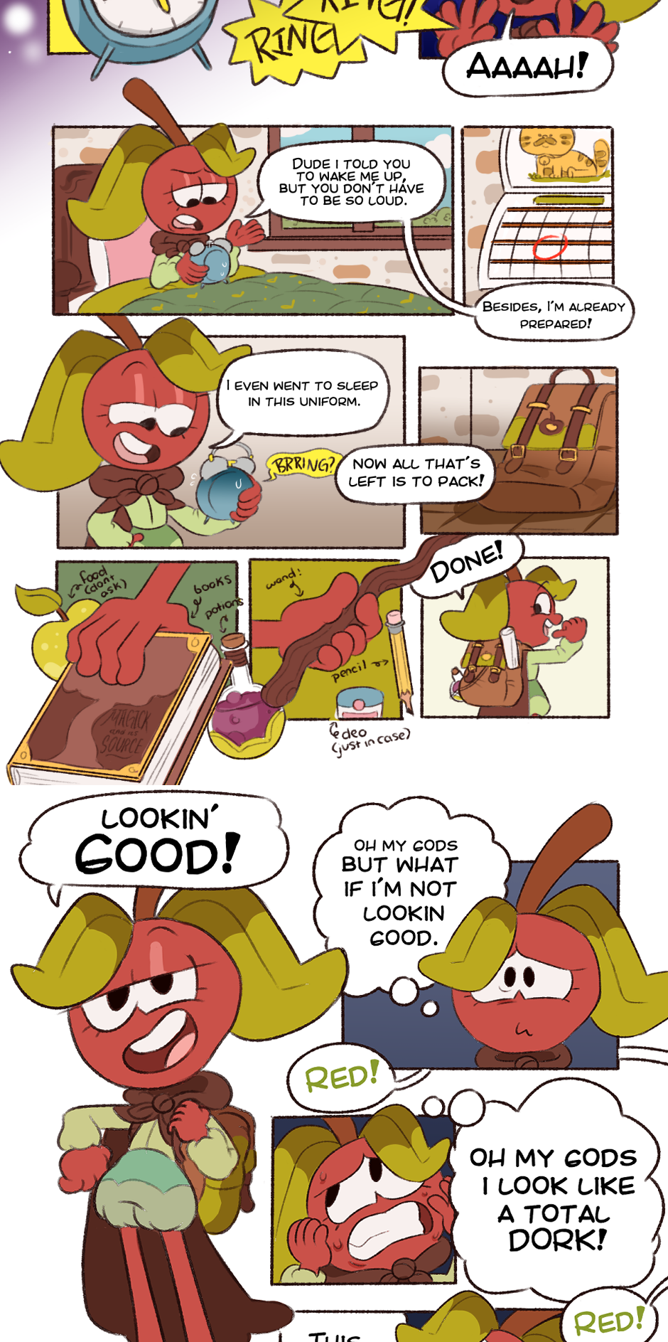 Red panics about her first day at the Magic Academy! Updates with three new pages every Friday! Thanks for reading!