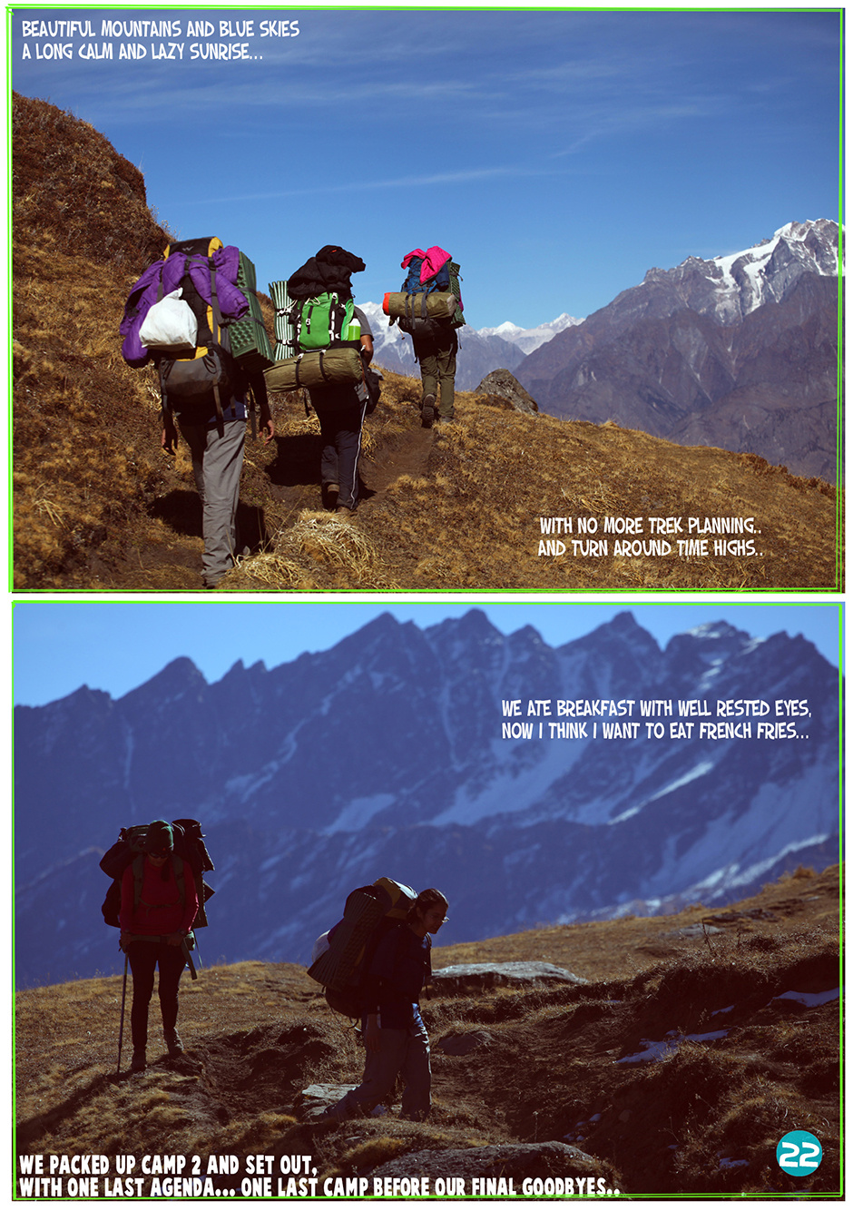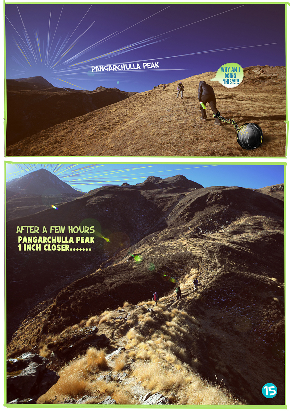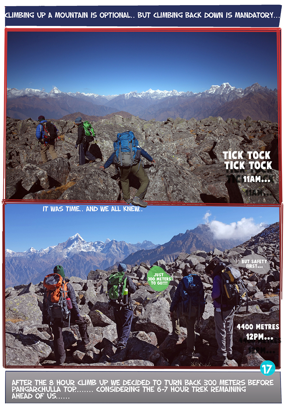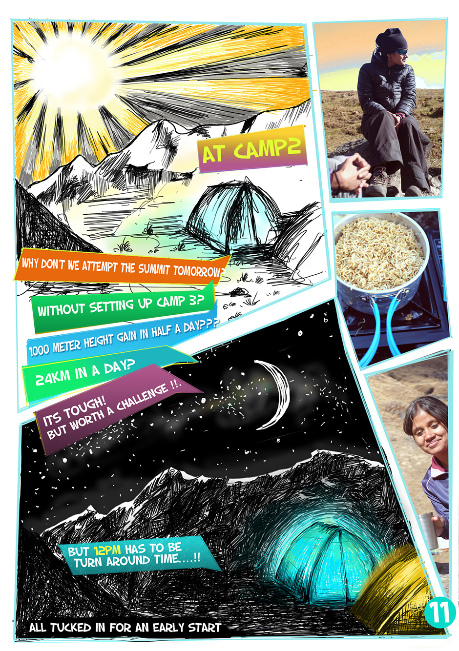 Five girls went climbing in the Himalayas to Pangarchulla Peak as part of Bachelorette celebrations..With no porters and kitchen staff they went Alpine style attempting a 6day trek in 2days!!! read on to see what happened in this photo-illustrated adventure crazy mountain comic...