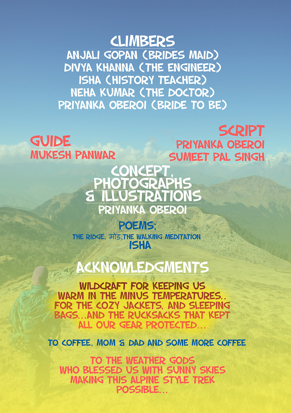 A photo-illustrated adventure of five women in the Himalayas on a mission to climb Pangarchulla Peak(5000mtr), Alpine style!! This was how they celebrated their fellow climber's Bachelorette!! this story is the First hand account of the Bride to Be... watch how the adventure unfolds!!