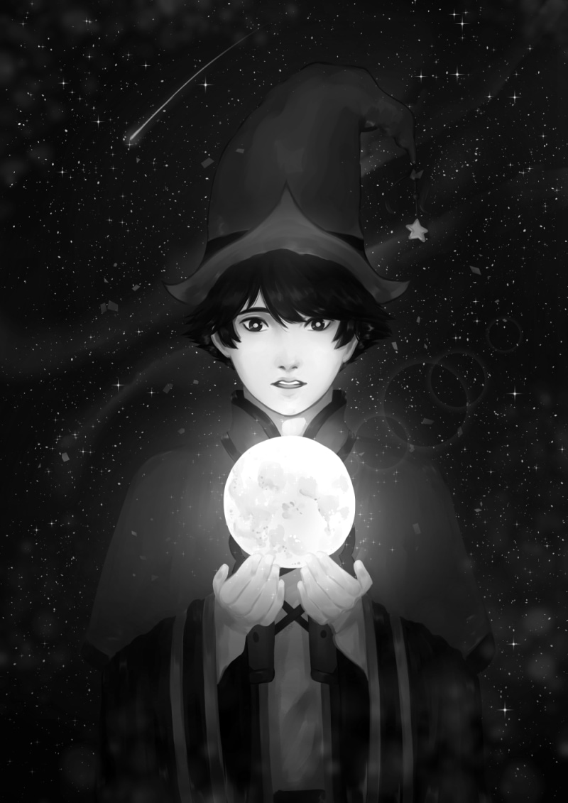 Nao, a young wizard and the last of his kind, practices hard to get better and make his dream come true. Just as the young wizard thought he made it, he fucked up. Nao accidentally summoned the moon down to earth and now has to deal with the consequences. Will he be able to send the moon back? Well, read the damn manga if you want do know!