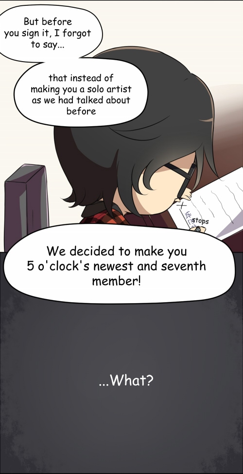 **A quick mini series about the boys of 5 o'clock** Chinhae was a normal and ordinary boy. A boy who liked singing and dancing in private. But this was all about to change soon.. After a video of him performing went viral on the internet, Chinhae was approached by KPC Entertainment. They thought he was very talented but not only that, they wanted him to join 5 o'clock! Will his life ever return to normal?