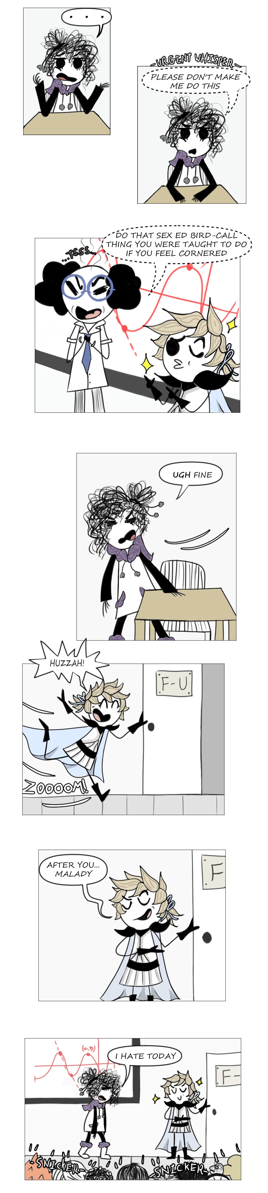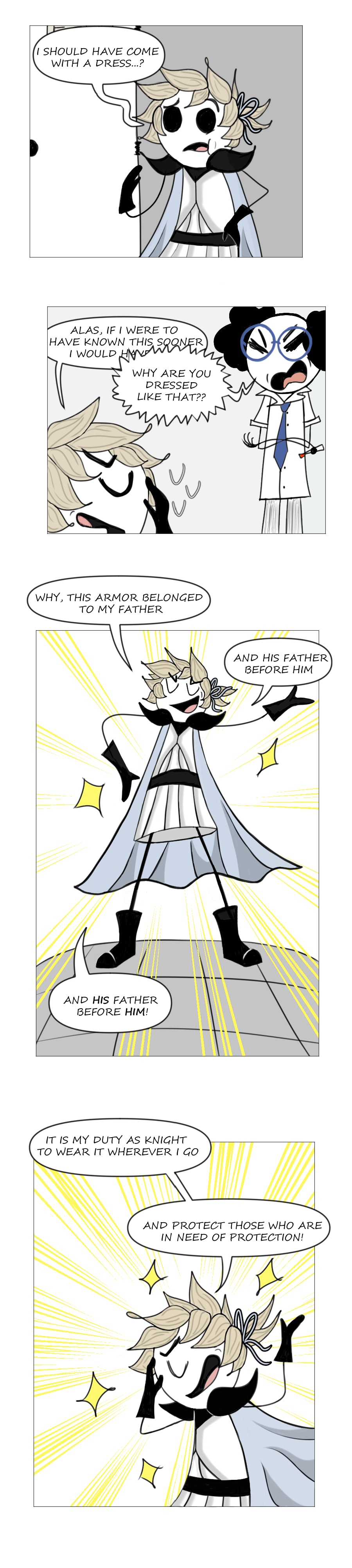 Lilith is the Chosen One! Which SUCKS since she's a cynical, fantasy-hating teen, and the one accompanying her on her reluctant quest is an obnoxious, romance-fanatic trainee knight. Follow along the adventure of two opposites causing\dodging fairytale clichés on left and right!