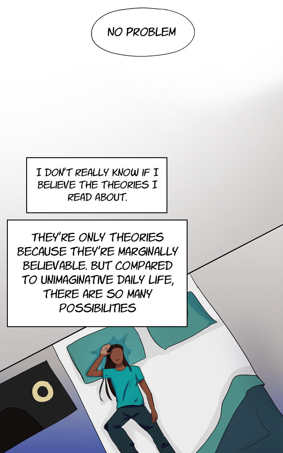 Atiena is a girl fascinated by conspiracy theories, the possibilities beyond her current reality. So fascinated she's constantly on the app that hosts the best and the worst theories. When a young stranger from the app messages her about a new theory he says is real but also slowly appears to be real... she gets roped all the way in.