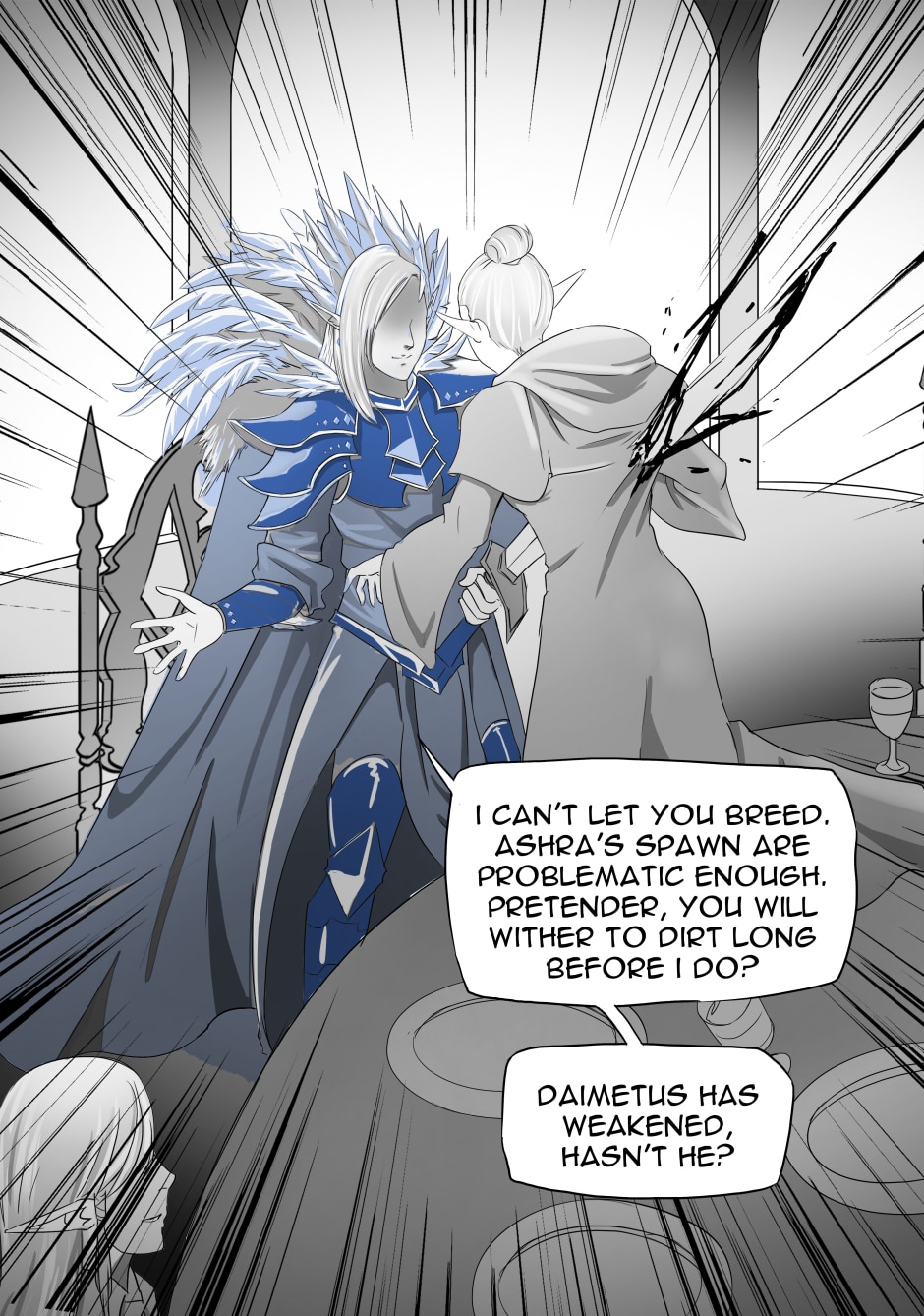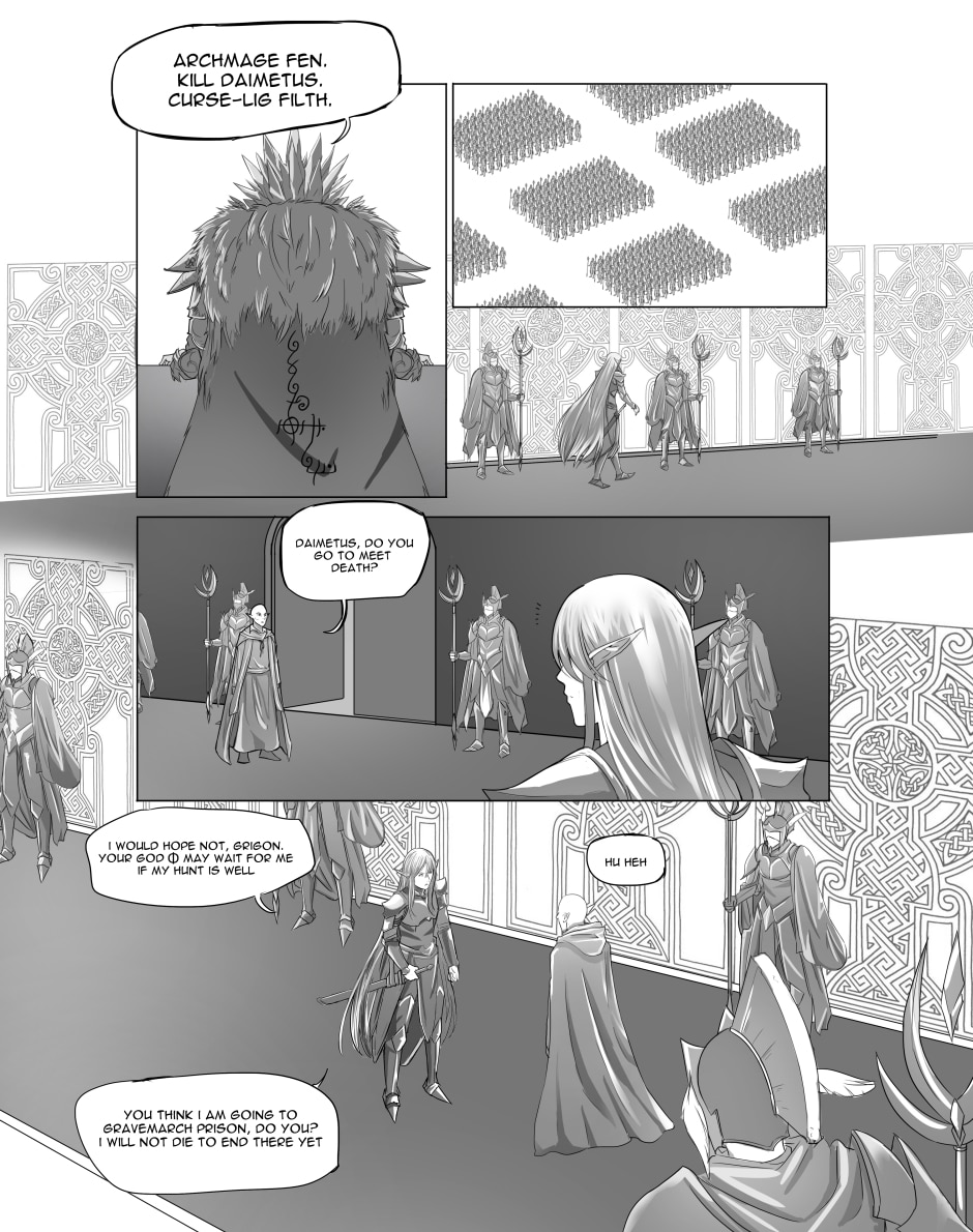 Ch1 introduces the Snow Elf council, and the demise of Daimetus. This chapter is a Foreword to the next story arc. The first arcs of this series that follow will be set 500 years prior. Then the story will continue on from after this chapter.
