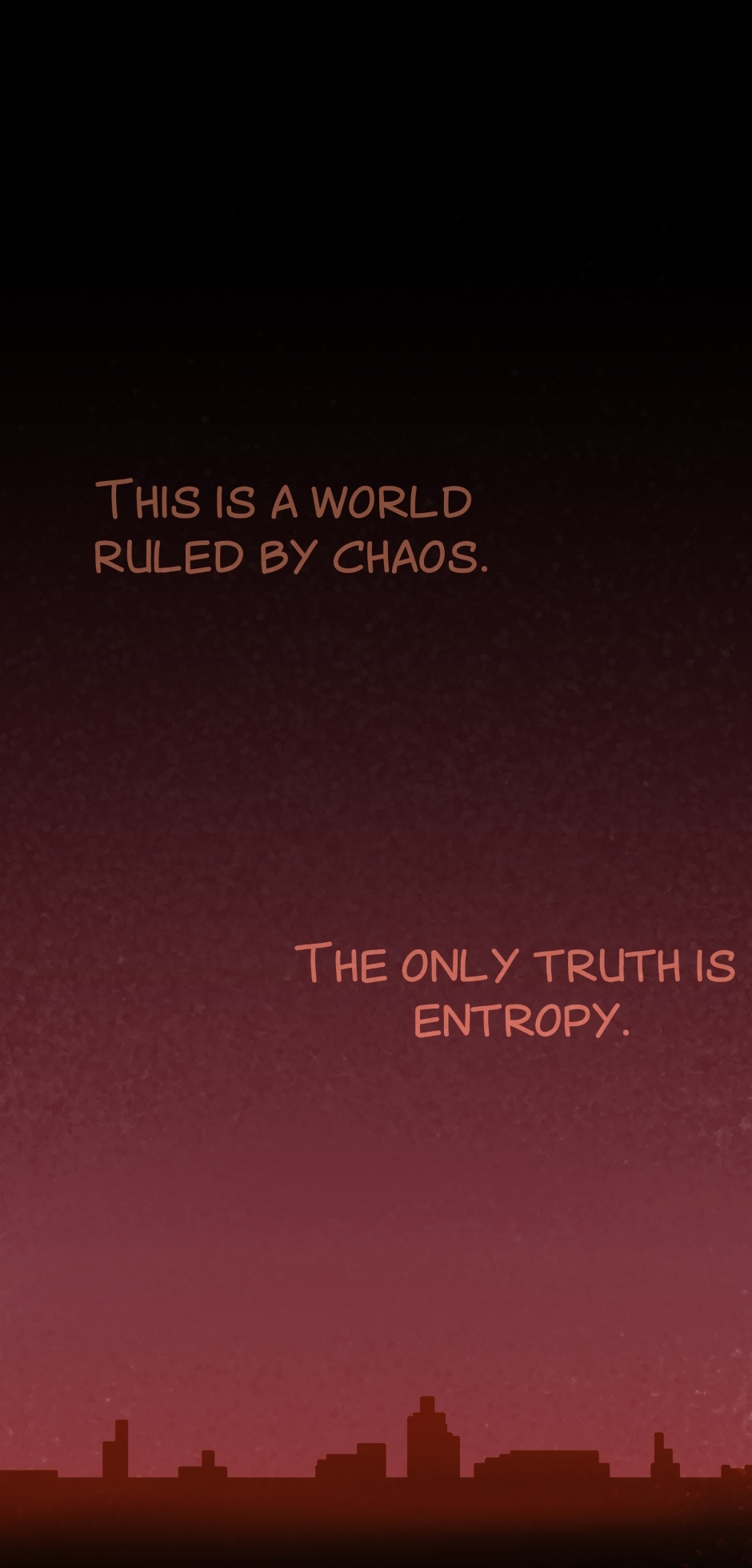 On a plane of existence parallel to Mortal Earth's, Entropy is the only truth. Power is taken by force or manipulation. Cooperation is temporary and purely fueled by overlapping desire. No one, or nothing, can be trusted. Everything exists for its own flavor of destruction, and it's just natural chance that Mortal Earth occasionally falls into it. What happens when Alt, an infamous shapeshifter gets a taste of serenity for the first time? Perhaps, there is more to this life than chaos?