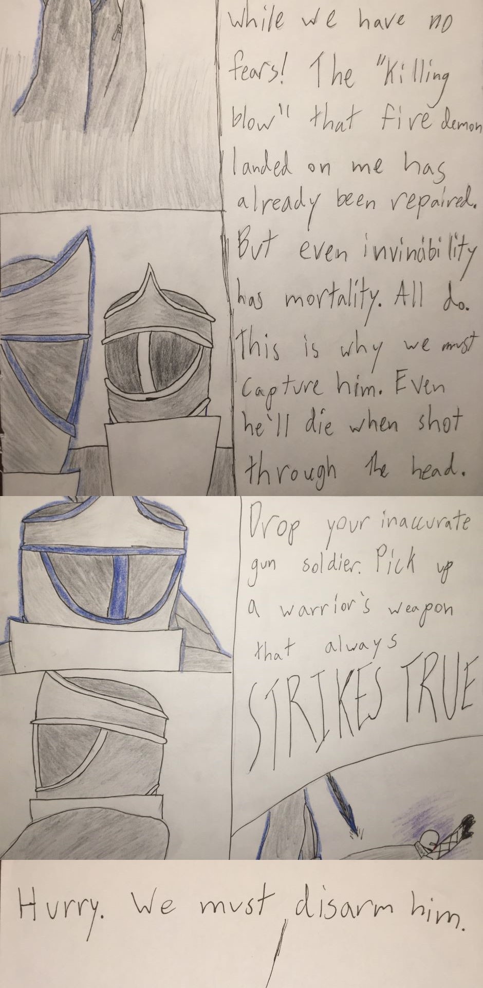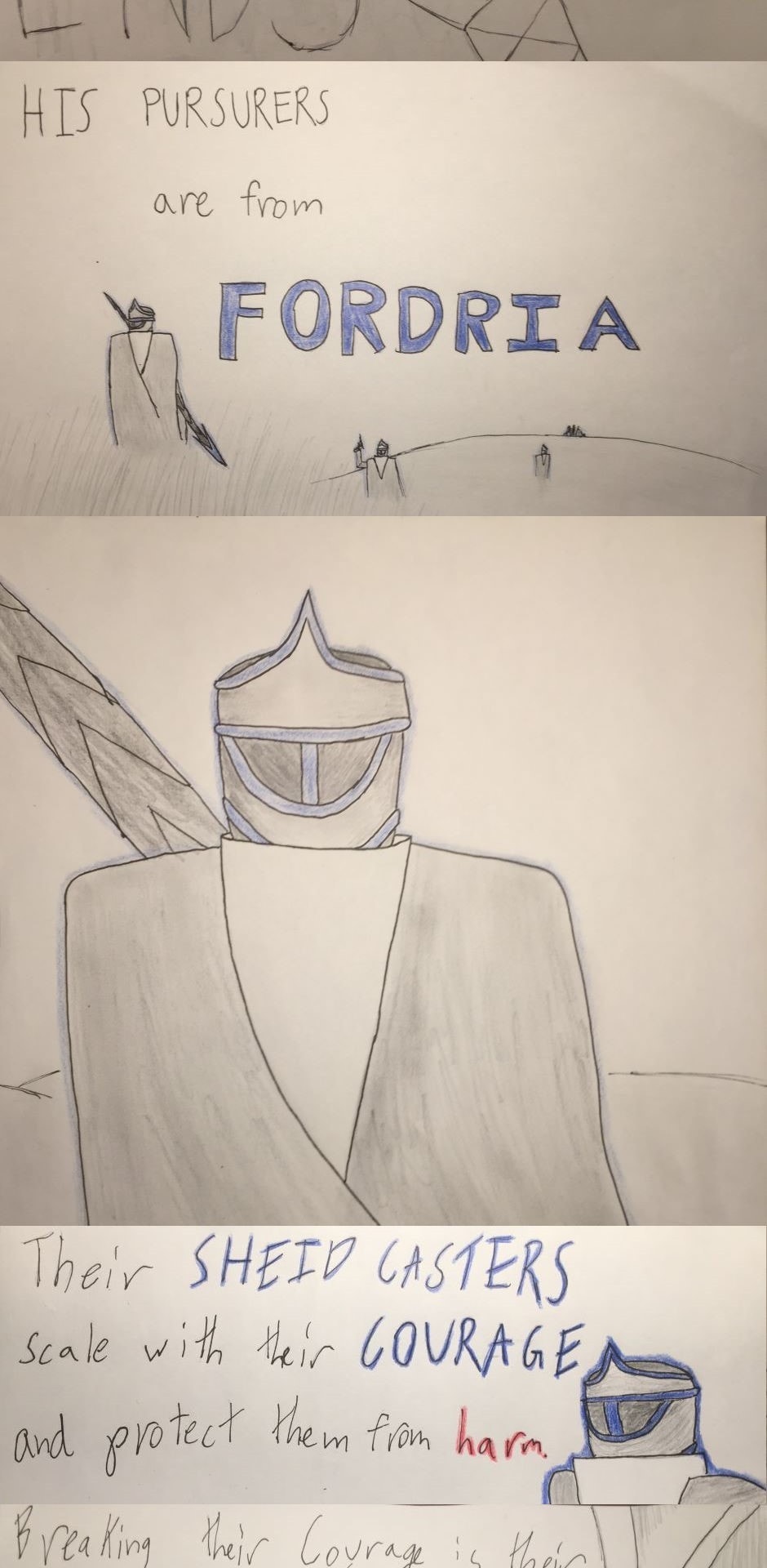 Not all Shield Casters are equally strong and strength varies greatly depending on the individual. The strength of the armor depends on the current Courage of the individual. The braver the soldier, the stronger their armor. Once the user begins to have doubts, or fears their enemy, their armor weakens and their blue fades. Making your enemy fear you will be their quickest defeat.