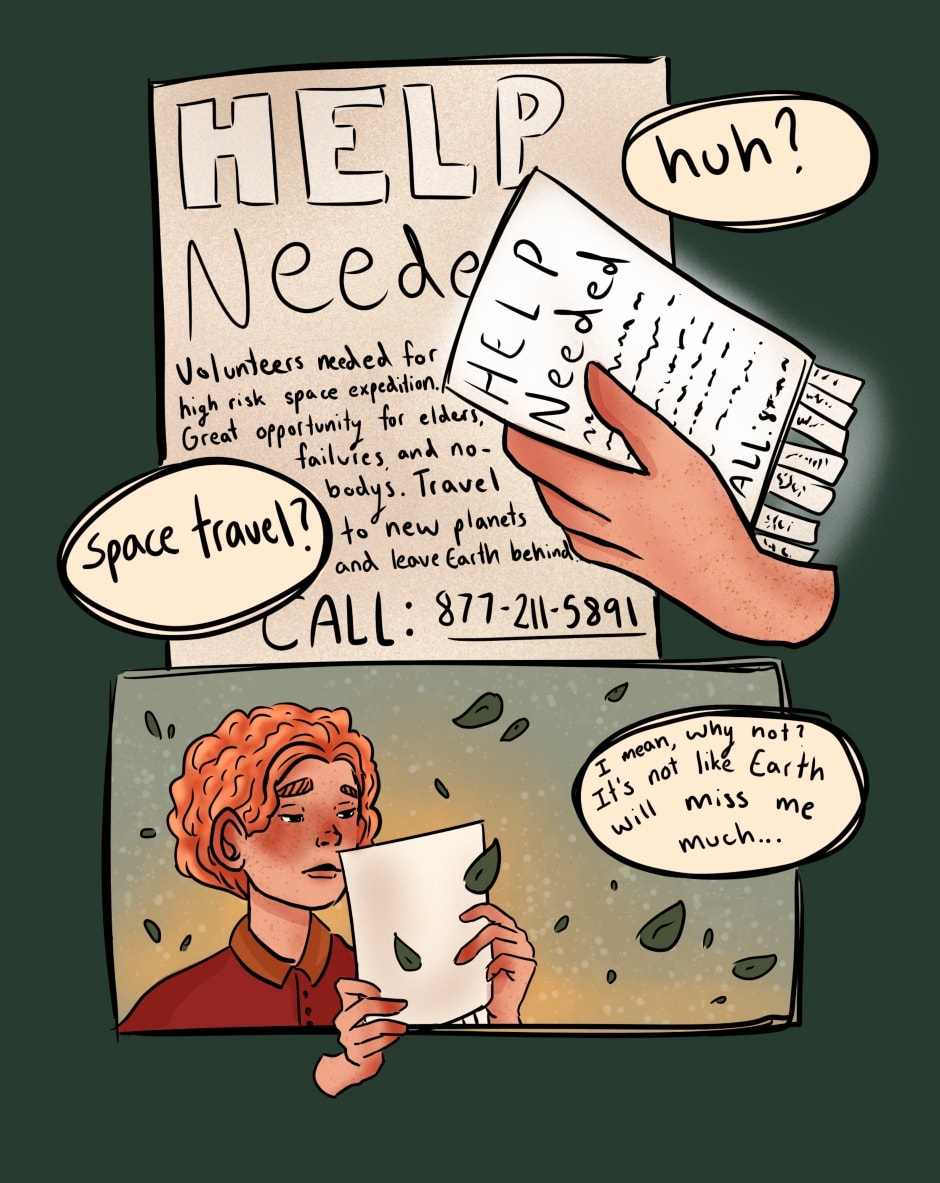 Adhara is 16 years old and has been moving from foster home to foster home their whole life. They live out of a suitcase and know that they'll never be somewhere long enough to have roots. When they are presented with the opportunity to travel space on a revolutionary space mission, they jump at the chance, not knowing the adventure they are about to embark on. As Adhara spends time in the space shuttle, they notice that this may finally be the place they call home. Traveling from planet to planet, they rediscovering who they were meant to be and find their passion.