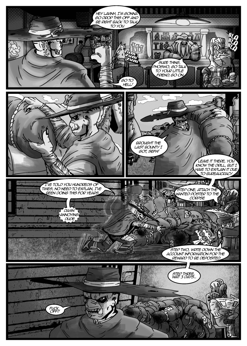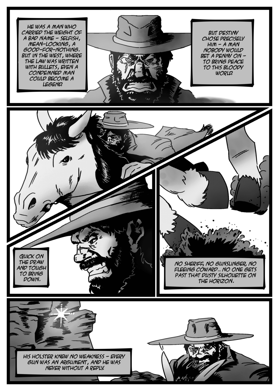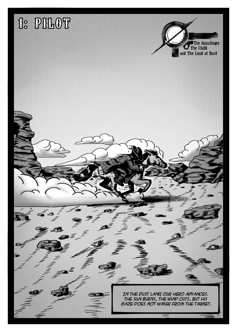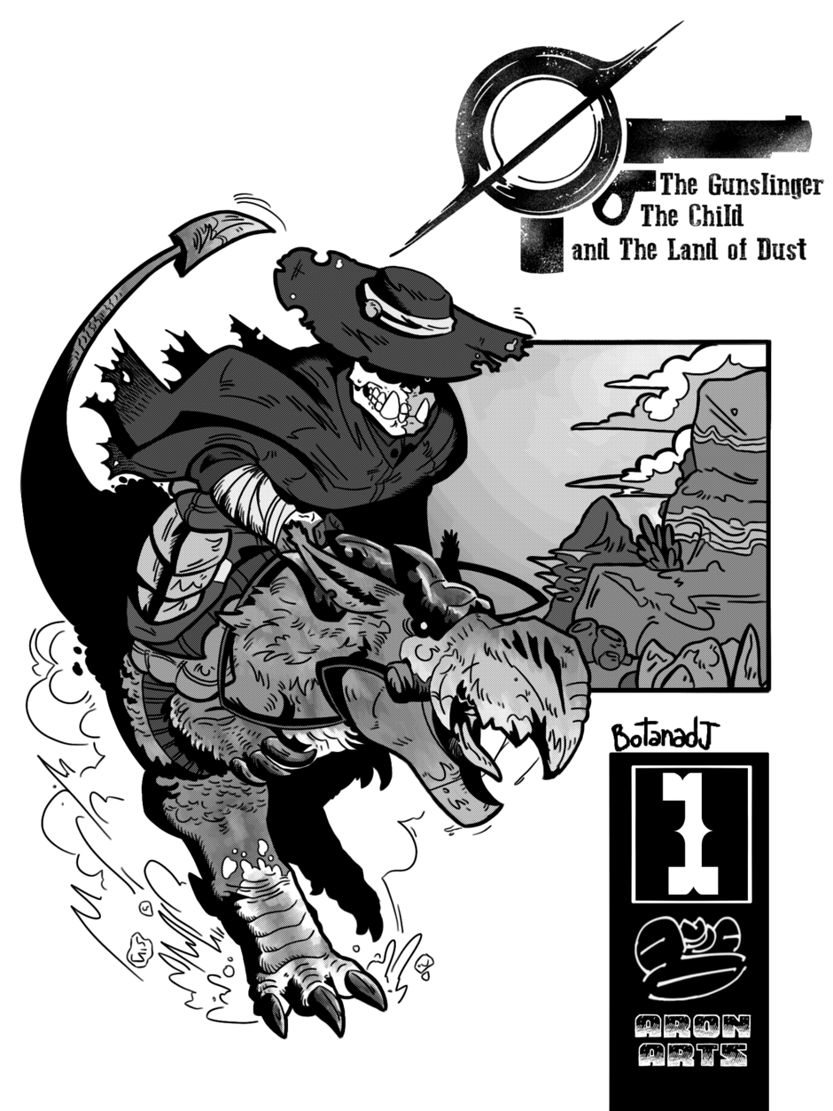 The Gunslinger, the Child, and the Land of Dust is a story about a gunslinger on his planet, full of thieves, criminals, and opportunists, which has been ruled for centuries by a tyrant, Phoswo, our protagonist. He takes advantage of this gang of outlaws, hunting them down and earning rewards to make his daily bread. But one day he is presented with a different request: an old woman asks him to take a child to the most dangerous place in the Land of Dust in search of a prophecy to dethrone its evil leader.
