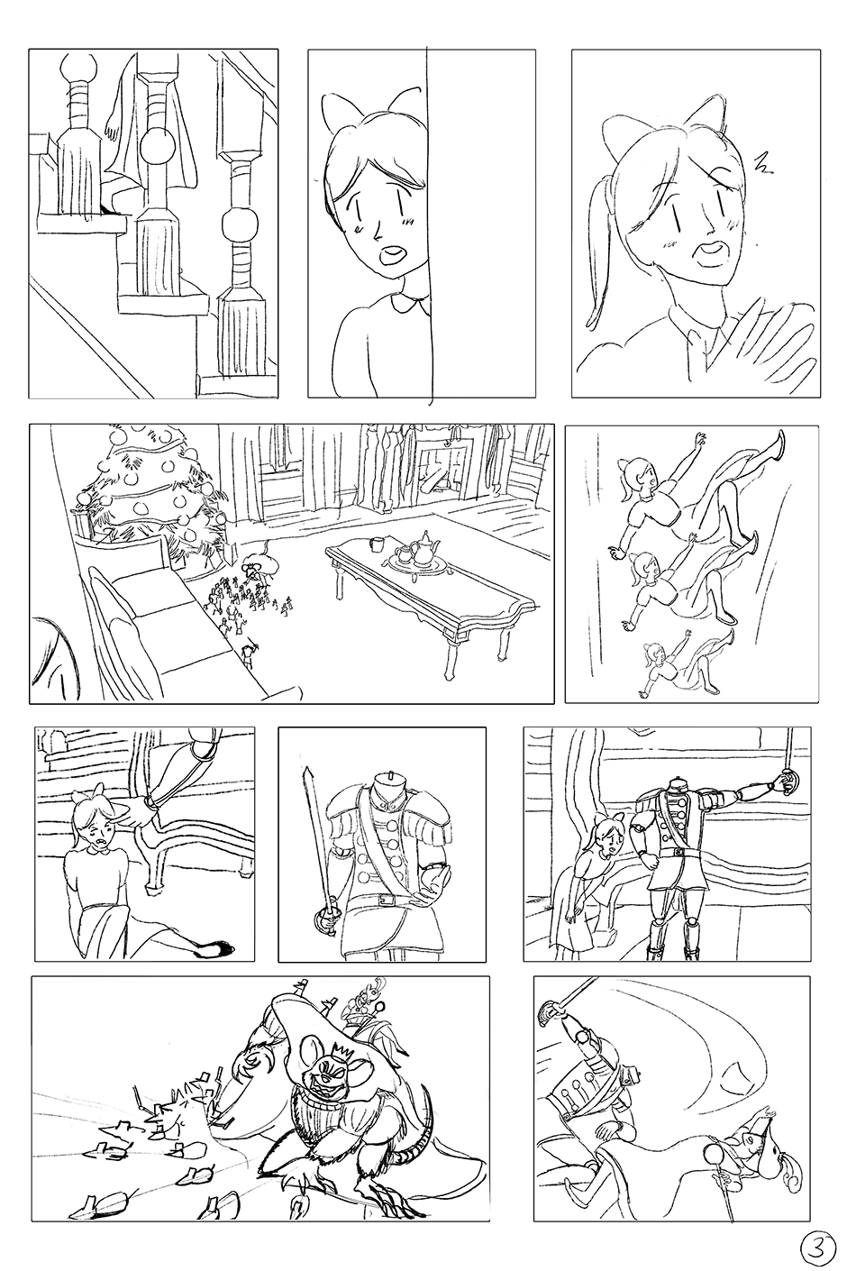 Just a short silent comic for school. Siblings fought over toys during Christmas day. The big sister accidentally breaks the little sister toy. She got lectured by her parents, and she cried off to her room. When midnight hits, she hears some noises in the living room. When she's checking out the living room, she found out an army of soldiers fighting against an army of mouses. She got to shrink, and from there she meet that headless soldier.