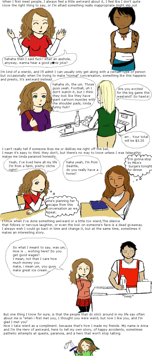 This is my comic about a weird hero, garbed in whatever she could find at the bottom of her drawer, saving the day one awkward experience at a time. Featuring true life experiences, and random thoughts sometimes.