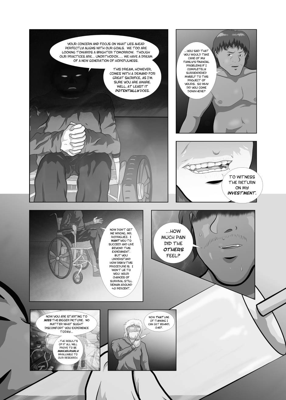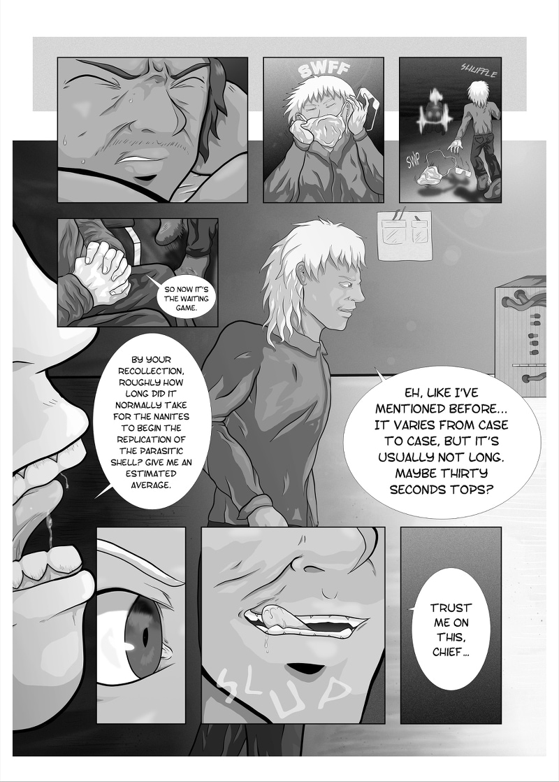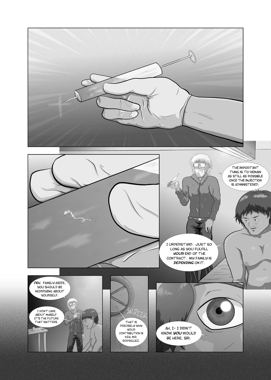 In a not-so-distant future, young Travis Lynert is disillusioned with the corrupted, cold, and uncaring state of society as he pursues his virology degree at his university. But one fateful day, he is infected with an experimental, biologically engineered, weaponized parasite that threatens to drag him into a hole that he can never crawl out of. Drowning in a sea of conspiracy, bodily horror, political tension, and the relationship with his close friend Ivy Takata, Travis struggles on.