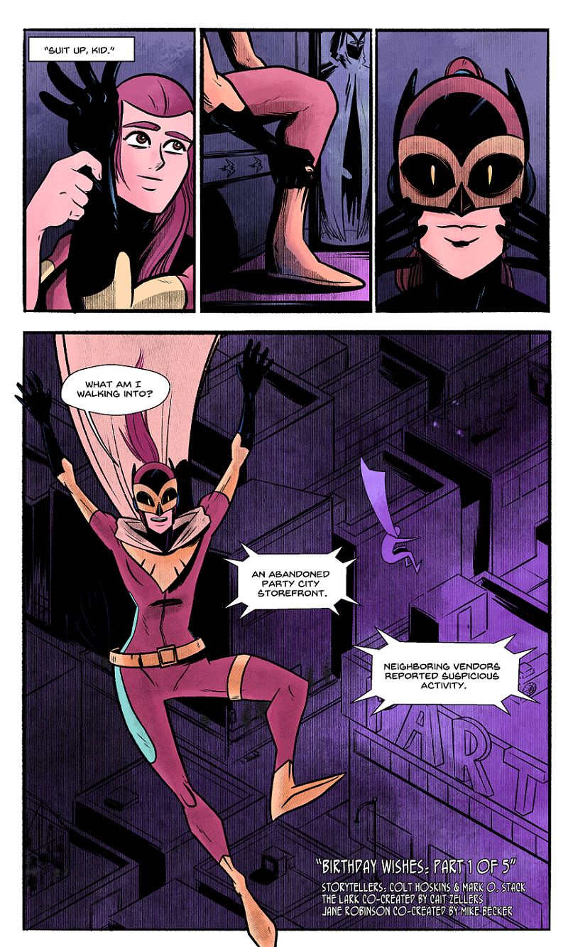 "Birthday Wishes" follows 16-year-old Jane Robinson as she attempts to fill her father's shoes as the superhero vigilante, The Lark, on a night of terror.