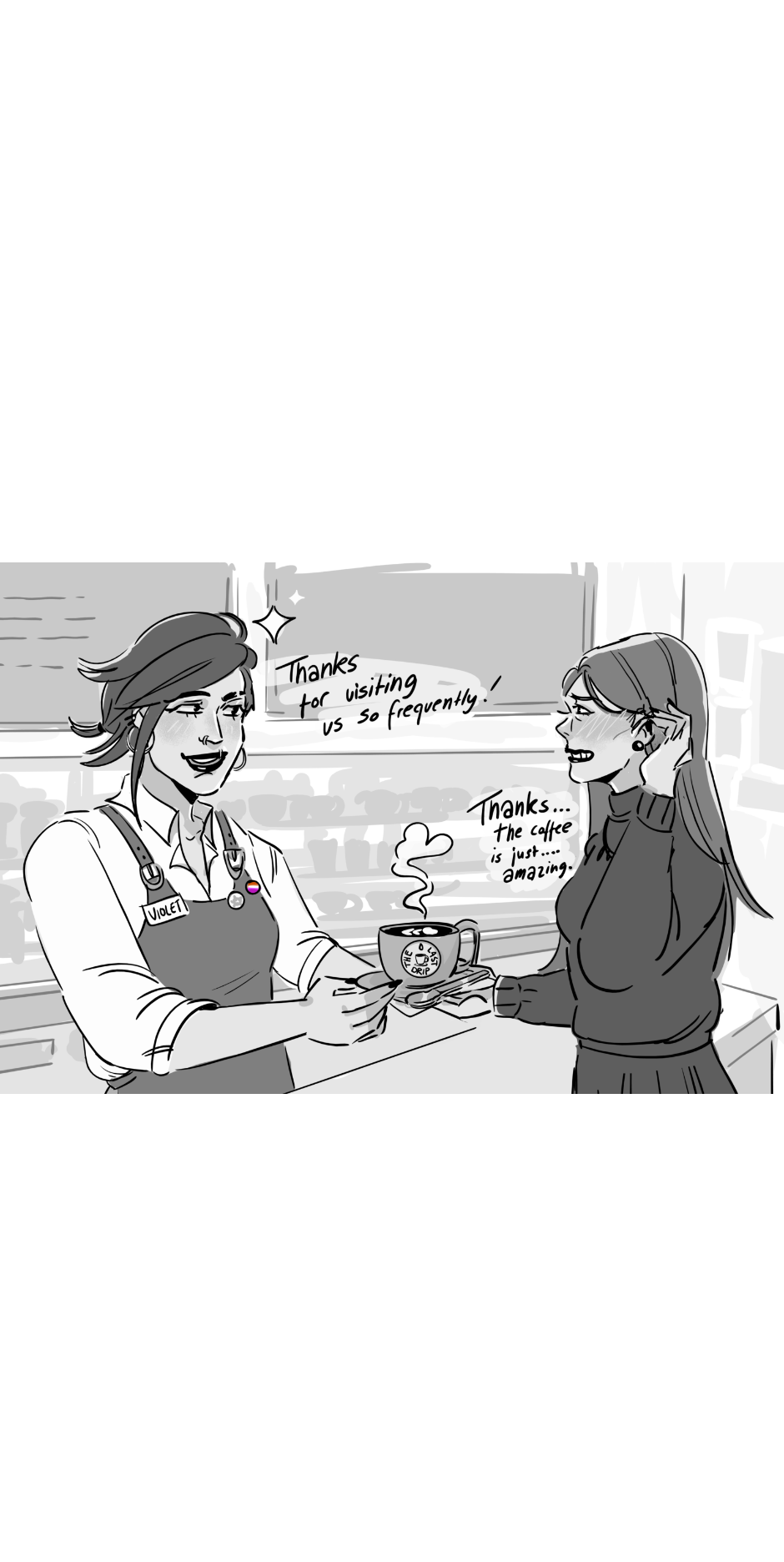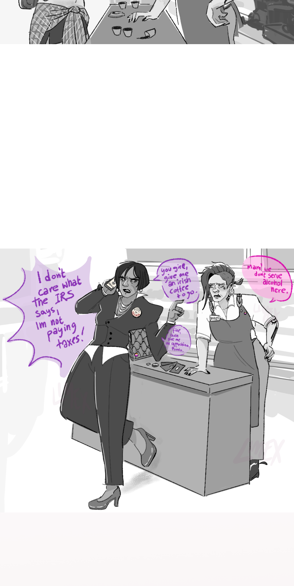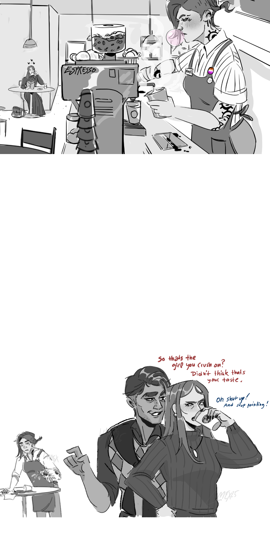 So there we are. The story won't have connected panels, but sometimes I draw moments that connect with each other. It's more a one panel thing.