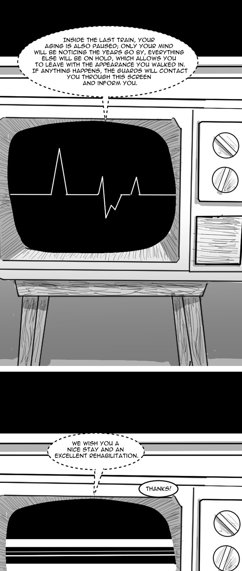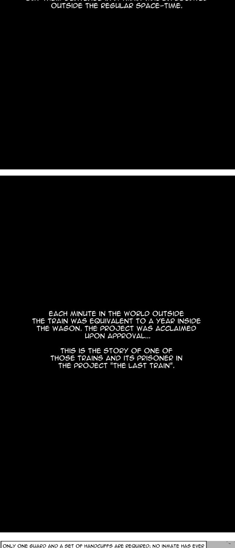 In a world where prison has been revolutionized, the "last train" project emerges. A project where the prisoner spends only a few minutes of the real world inside a white train, but years inside the carriage. A prisoner is chosen for the project, his sentence is 6 years and he will only spend 6 minutes of the real world in that universe, but something goes wrong...