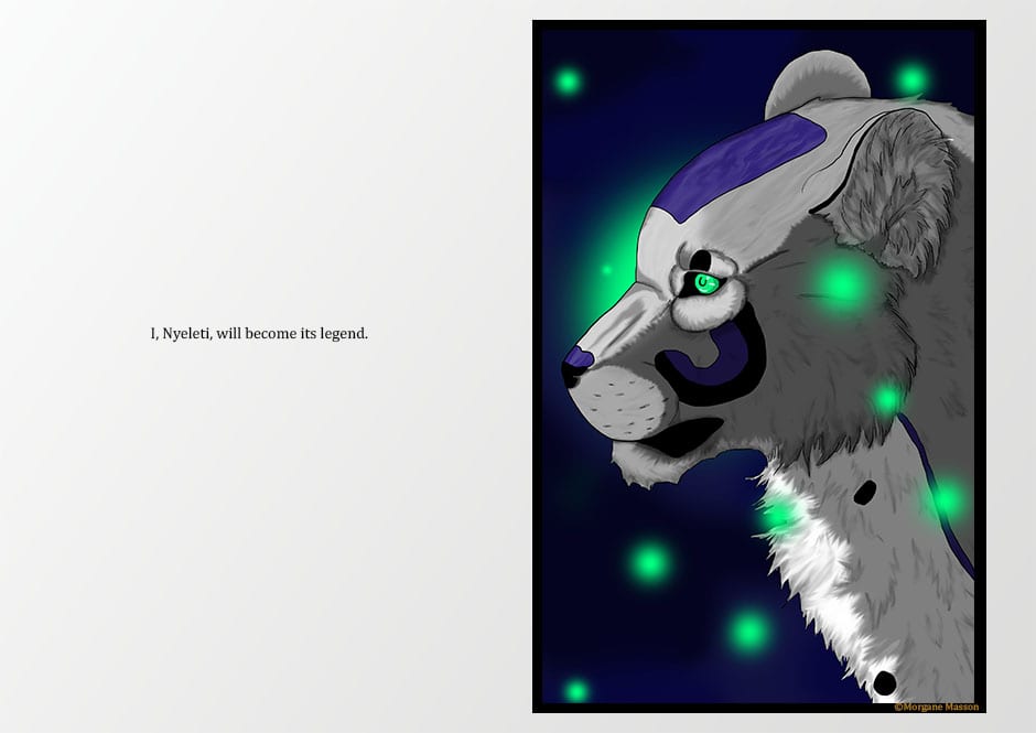 Nyeleti is a young panther living in a Garden of Souls, a place where creatures live freely before they come to life in a real world.