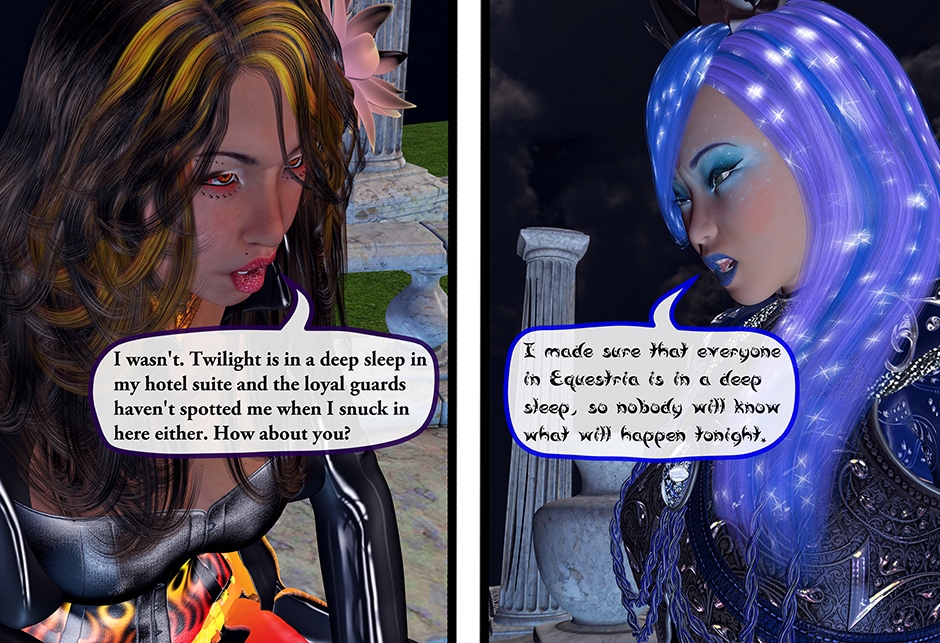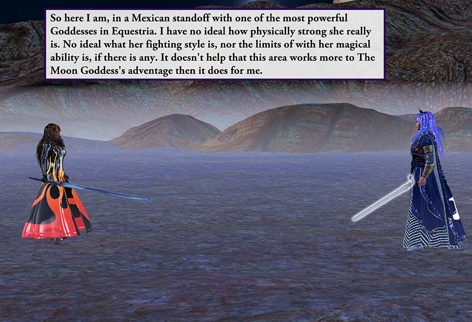 After Confronting Princess Luna in one of her dreams. Lady Maya Doi must now face against The Moon Goddess of Equestria herself and try to convince her that she is the reincarnation of her long lost companion. However, the more the two of them fight each other, more of their memories will come to surface clashing against one another, causing both of their mental stability to deteriorate. This is the continuation The Lunar Eclipse Act I.