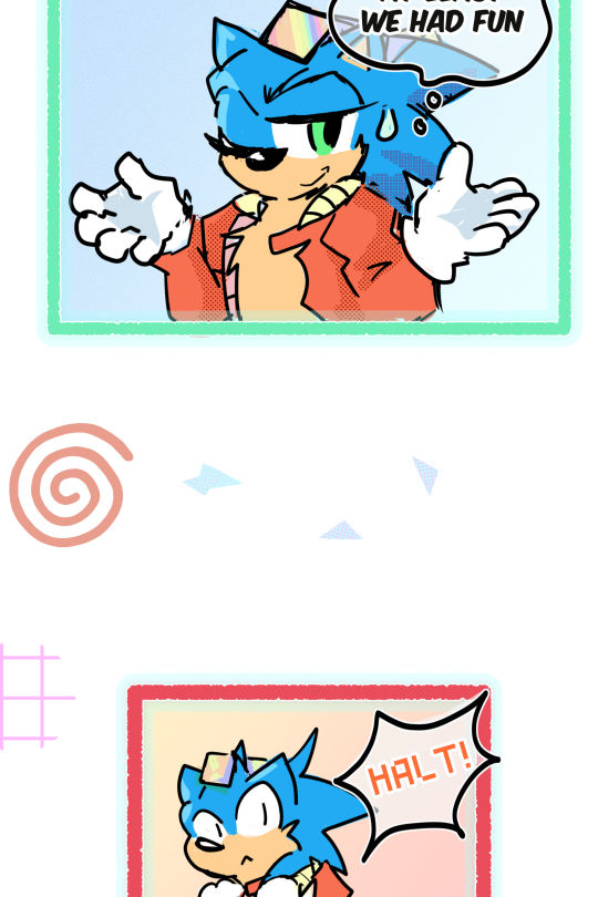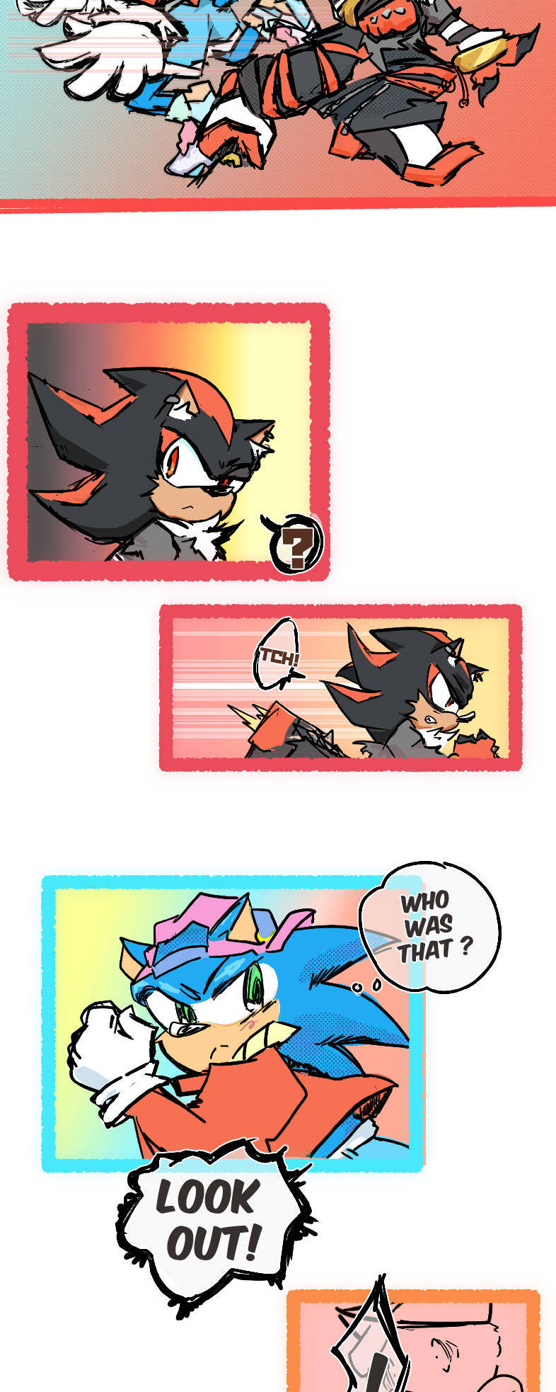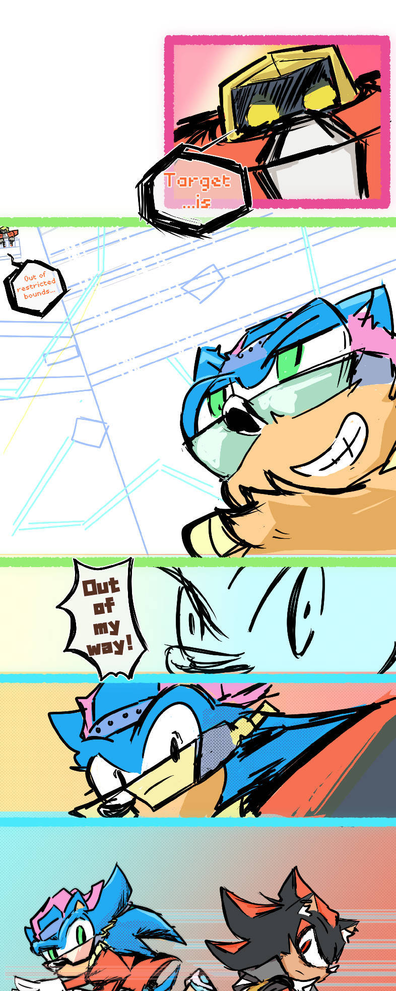 (Sonadow) Former hero and current performer spends his days goofing off in the mall zone, until a new speedy hedgehog comes to town or TLDR: Its an AU where sonic and co spend all day at the mall