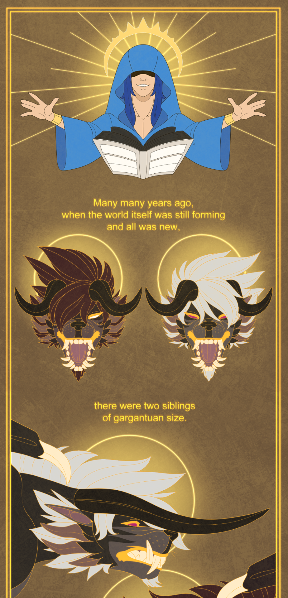 However, by pure luck, they are two of the fortunate few to be found by a fabled giant beast that calls the mountain its home, one people call The Dread King.