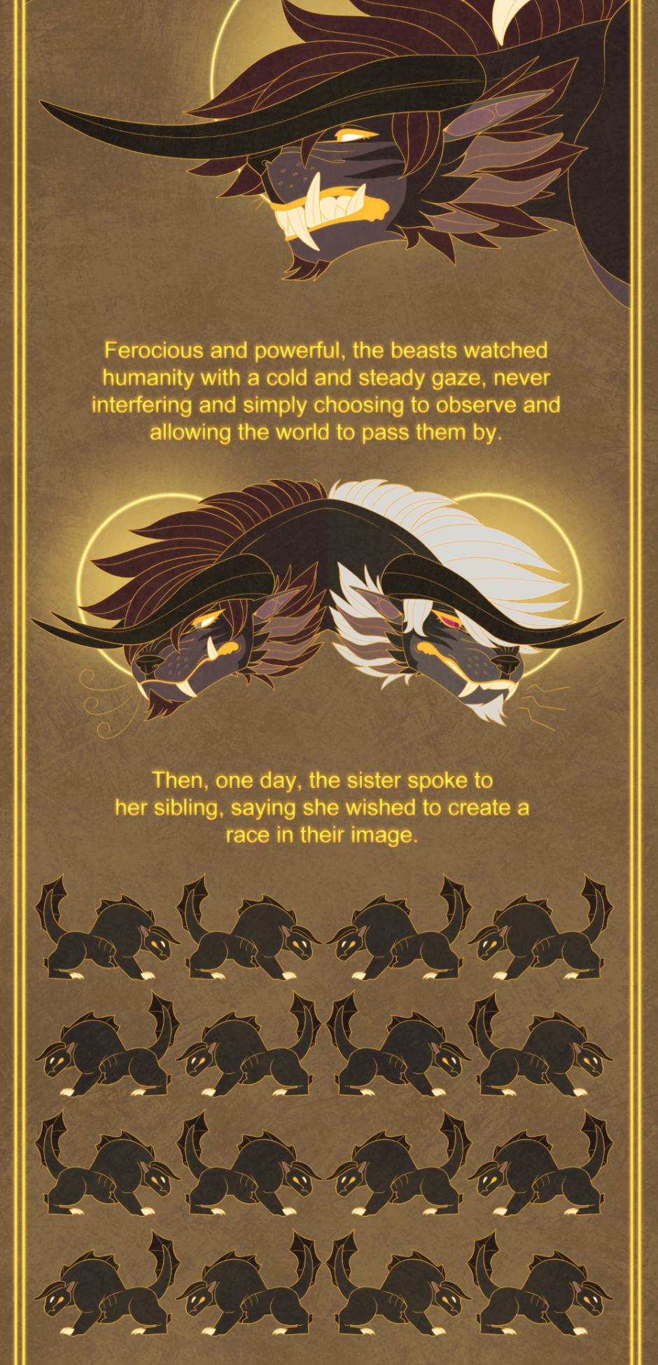 This comic has infrequent scenes of blood/violence and displays of abuse, making it best suited for an audience of 15+ yrs. Questions regarding content can be asked on my Tumblr (GoldieClaws).