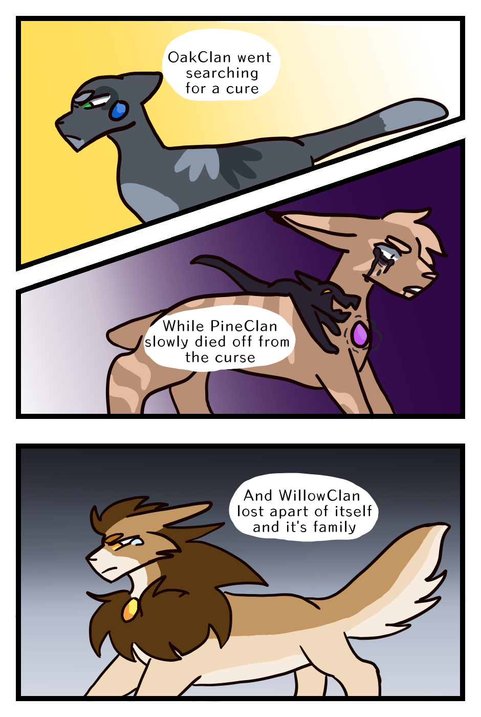 Long ago there were 3 clans each was given a gift, however those gifts came at a cost. A cost that would slowly turn and kill the clans. The cats in WillowClan were lucky to live, but are they able to stay alive?