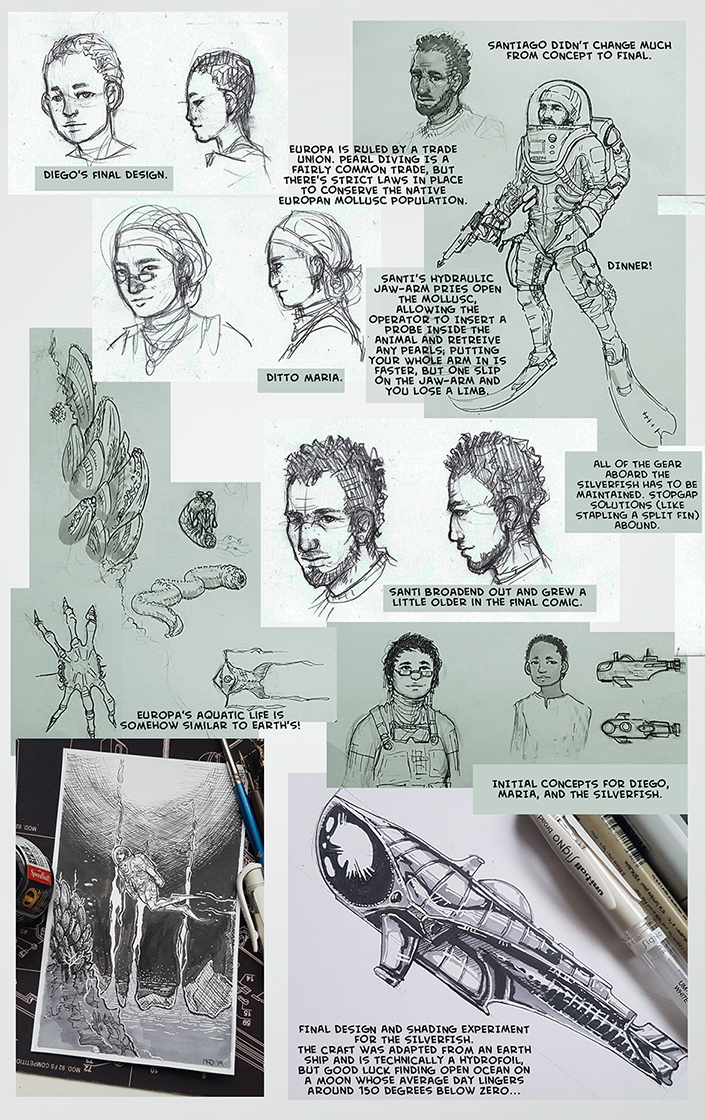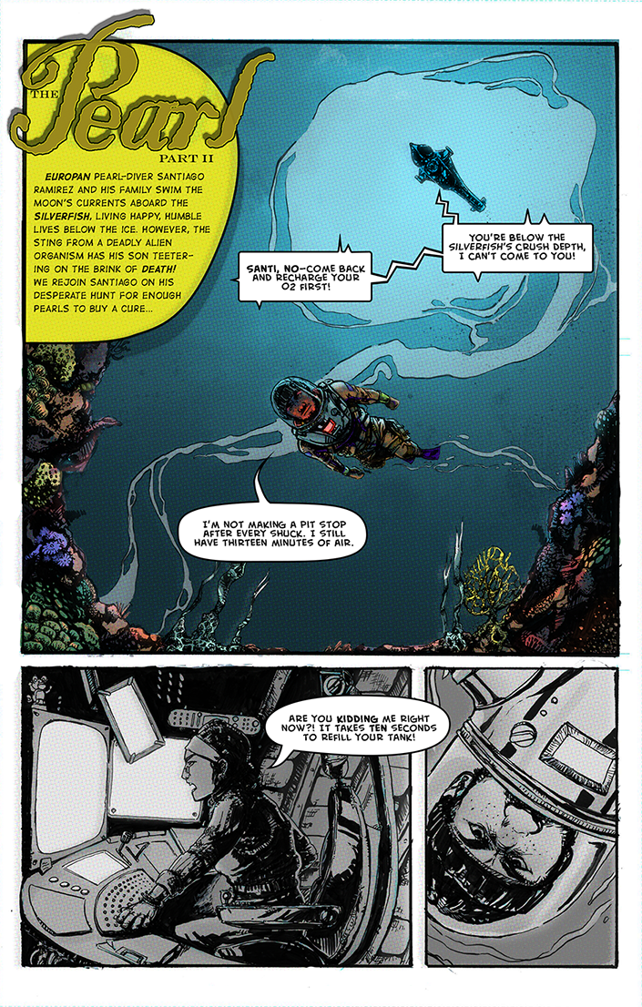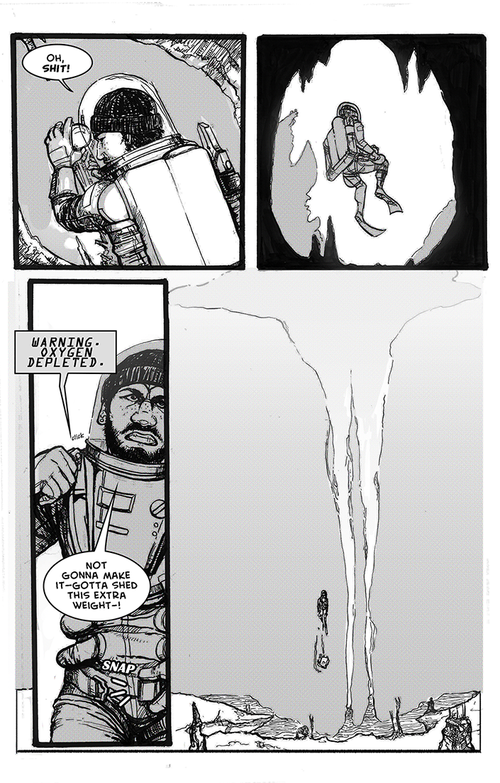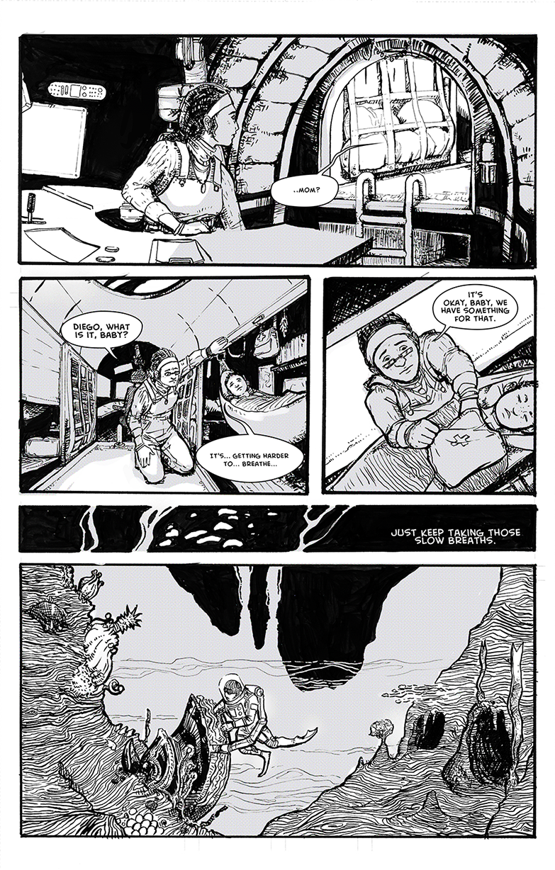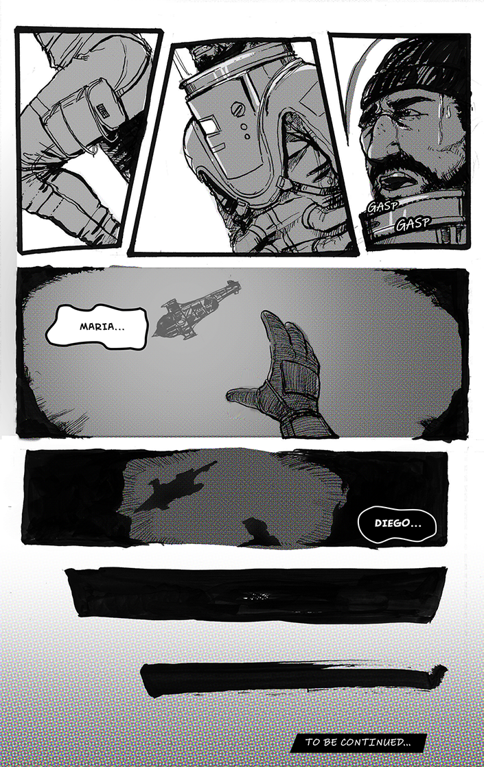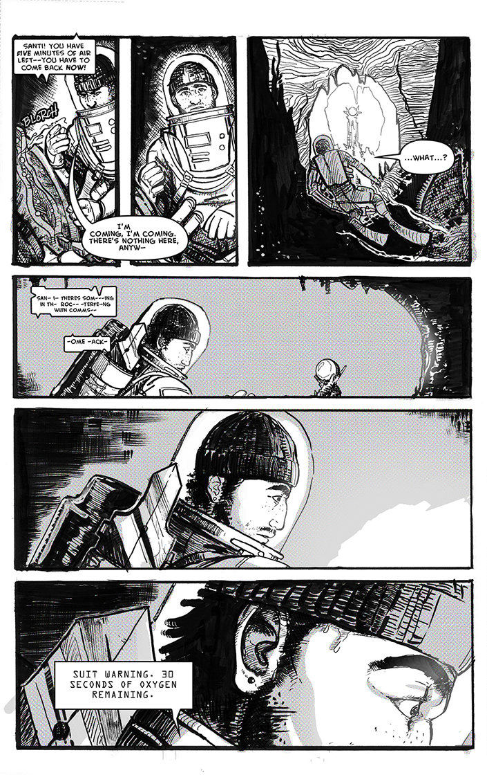 Hello again! I wrote, planned, drew, and lettered this whole sucker for another college class a few terms ago. We had to make a short comic based off of folklore or a bit of classic literature, so I used the Steinbeck story of the same name and set it on one of Jupiter's moons.
