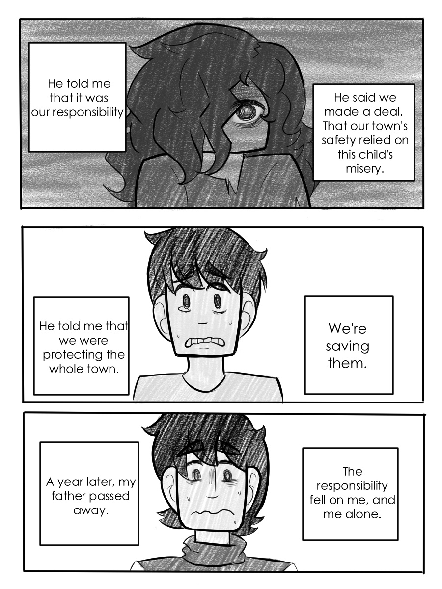 A very short, one shot comic that I made for my World Lit class. It's based off of the short story, The Ones Who Walk Away From Omelas by Ursula K. Le Guin. Tried to make it a stand alone story, but if you want more background, I suggest googling the original story.