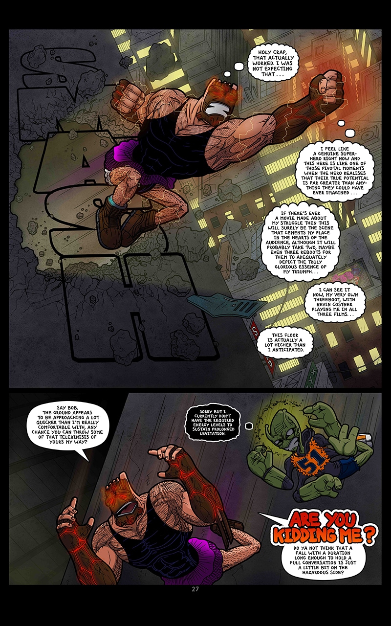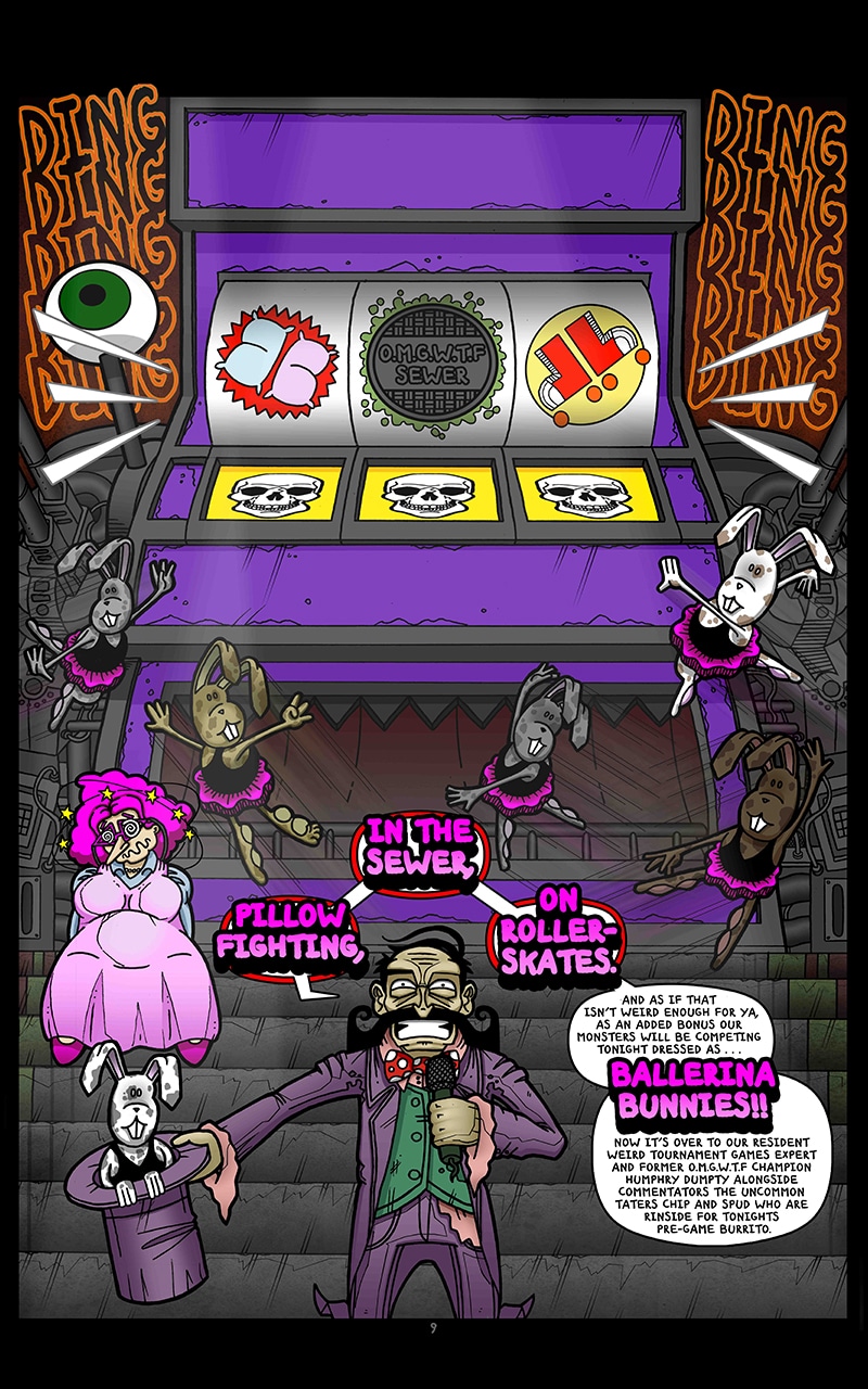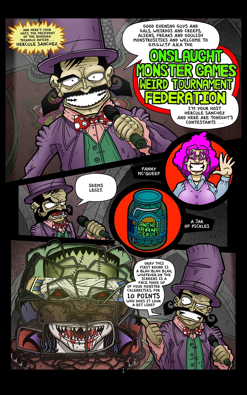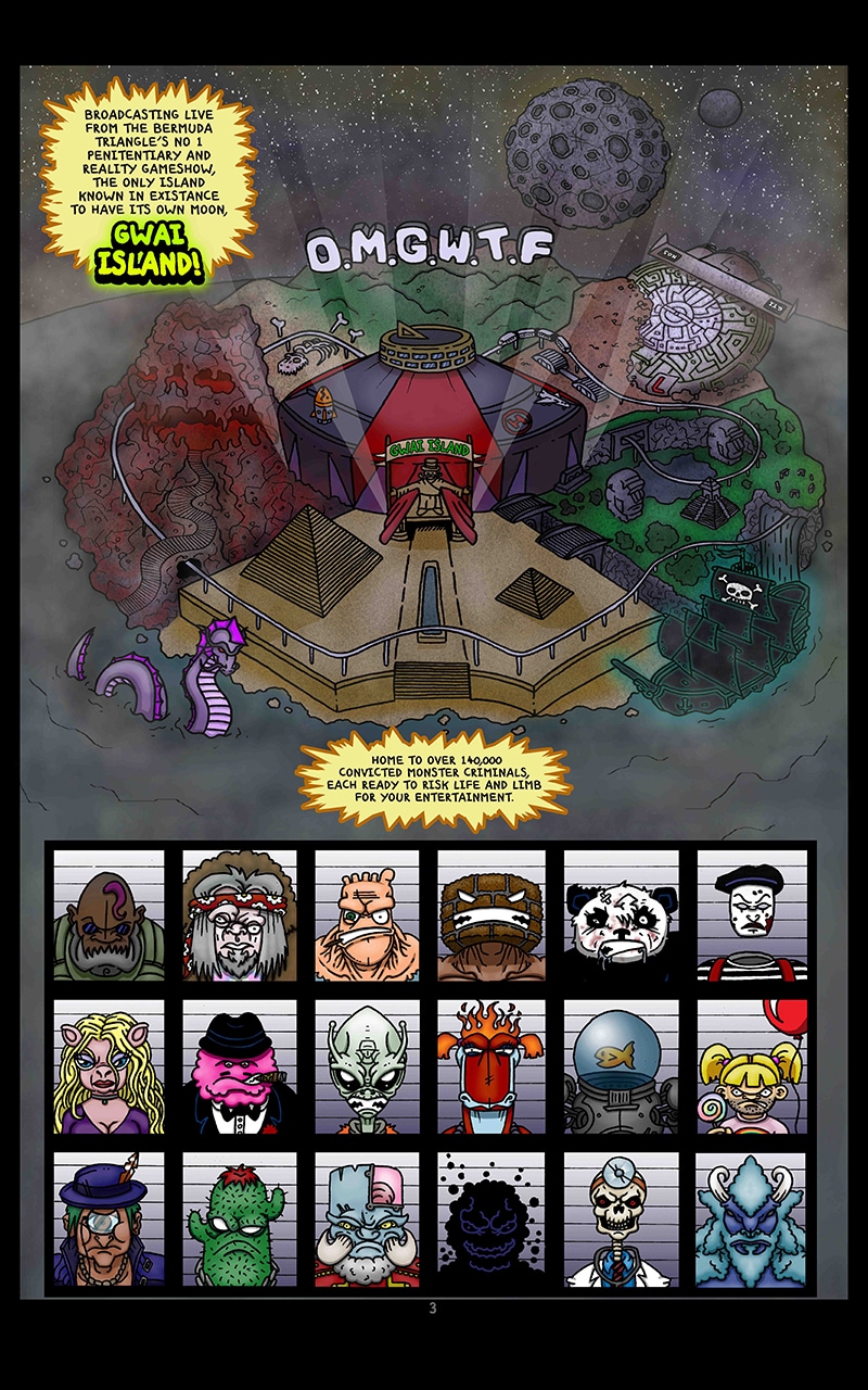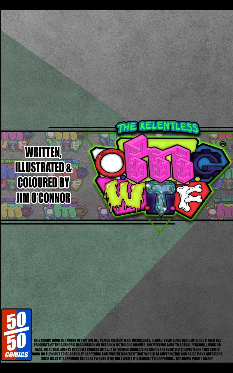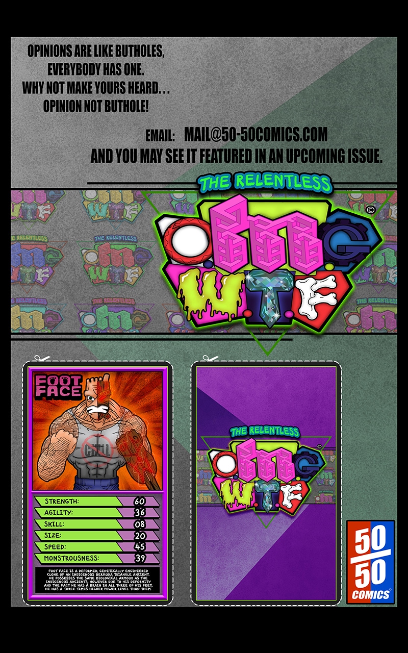 "50/50 Comics" flagship title "The Relentless O.M.G.W.T.F" is a comedic action-adventure story set within an alternate dimension inside the Bermuda triangle. With a cast of characters, and a story as outlandish as the title suggests, The Relentless OMGWTF is just as entertaining as it is unpredictable.