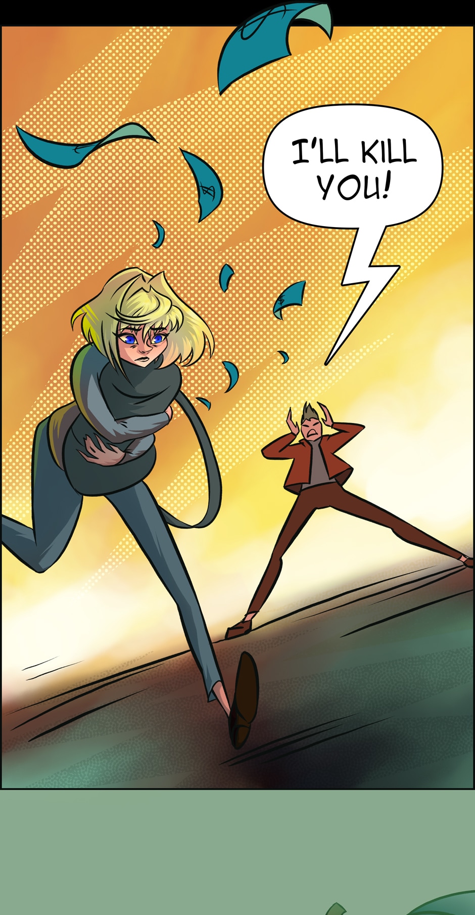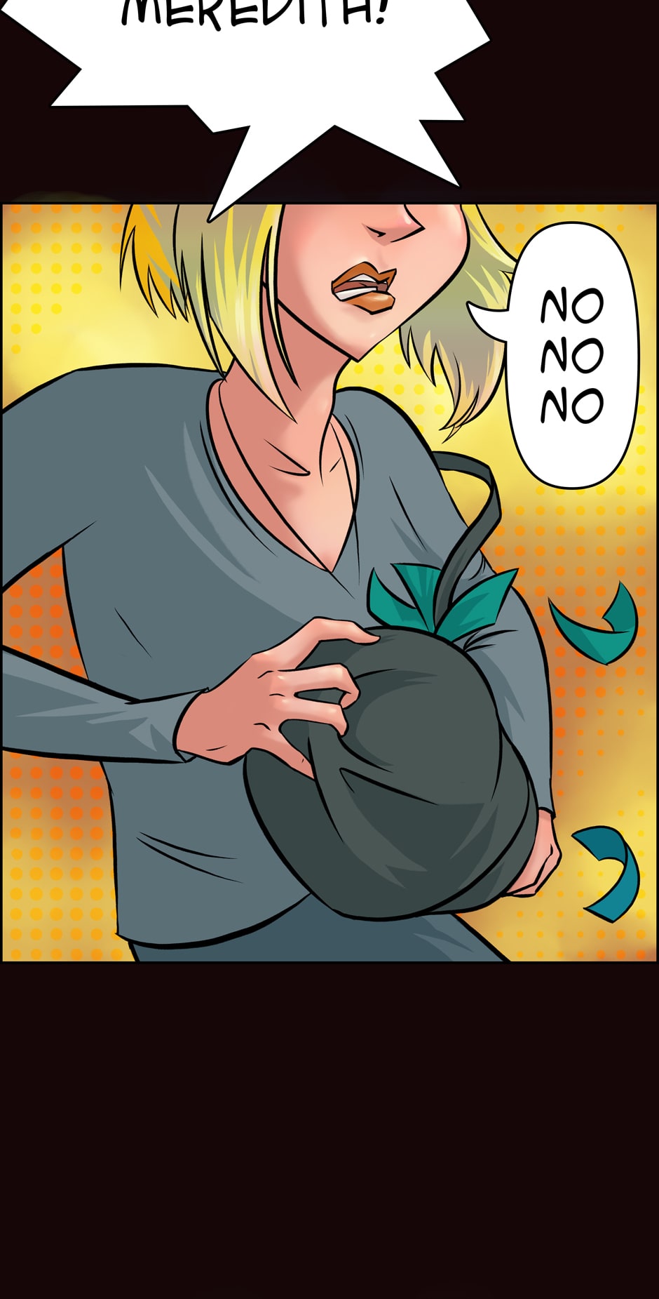 Meredith runs from an abusive relationship, stealing $16,000, their car, and his gun. A high speed car chase ensues down the freeway.