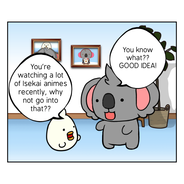 A side story from Kola & Eagy, Kola & Eagy got reincarnated to another world, where Kola became a fat bald headed uncle, and Eagy became a normal student. Using items that they find and their wits, they find ways to get back home. (This is currently an on-going comic relay on my IG)