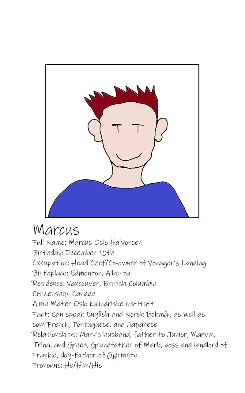The Vikings of Vancouver follows Norwegian-Canadian chef and restaurateur Marcus Halvorsen, his wife Mary, a retired police officer who currently works in retail; fraternal twin sons Marcus Junior, a musician, and Marvin, an autistic architecture student at Davie University; older daughter Trina, who plays for numerous collegiate sports teams; younger daughter Green, founder of the Eco Club at every school she's been attended since preschool; and grandson Mark, Junior's son from a high-school relationship. They live in a fictional version of Davie Village, Vancouver, in a large townhouse across from Voyager's Landing, the Scandinavian cuisine restaurant Marcus co-owns and operates, along with the Halvorsens' Norwegian Buhund, Gjørmete ("Muddy" in Norwegian), and Marcus's American sous chef, Frankie Morales, who is also Marvin's Boyfriend.