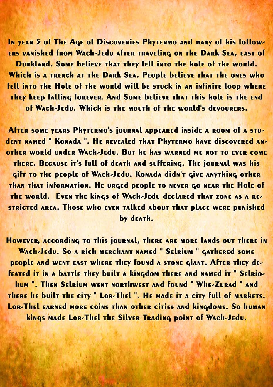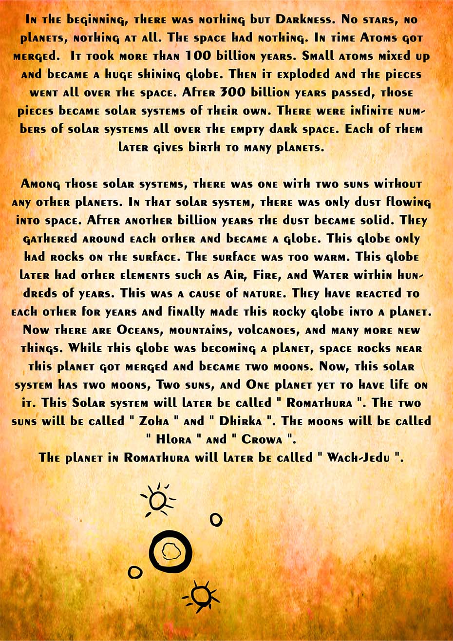 Wach-Jedu is fantasy world created by Jeewaka Ekanyaka. This Earth is full of Wonders and Danger. This is The History of Wach-Jedu.