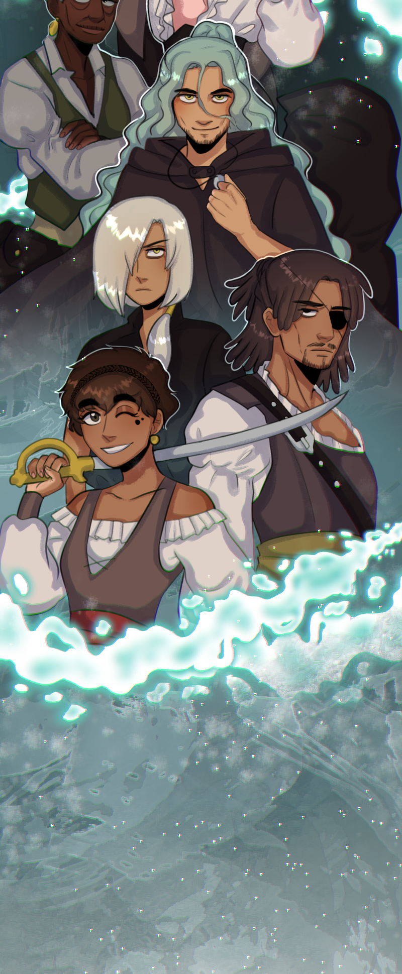 (SLOW BURN, LGBT+) Yasmin is a pirate who's obsessed with The Legend of the Holy Pearl, which says that this desirable treasure is supposed to be in the dephts of the sea. Her father, the captain of their ship, is just a grumpy man who doesn't care about legends at all. He only focuses on stealing, surviving... and leaving behind his mysterious past. Will Yasmin ever progress with her goal of finding the Holy Pearl? CW: strong language, slavery and depictions of abuse and violence.